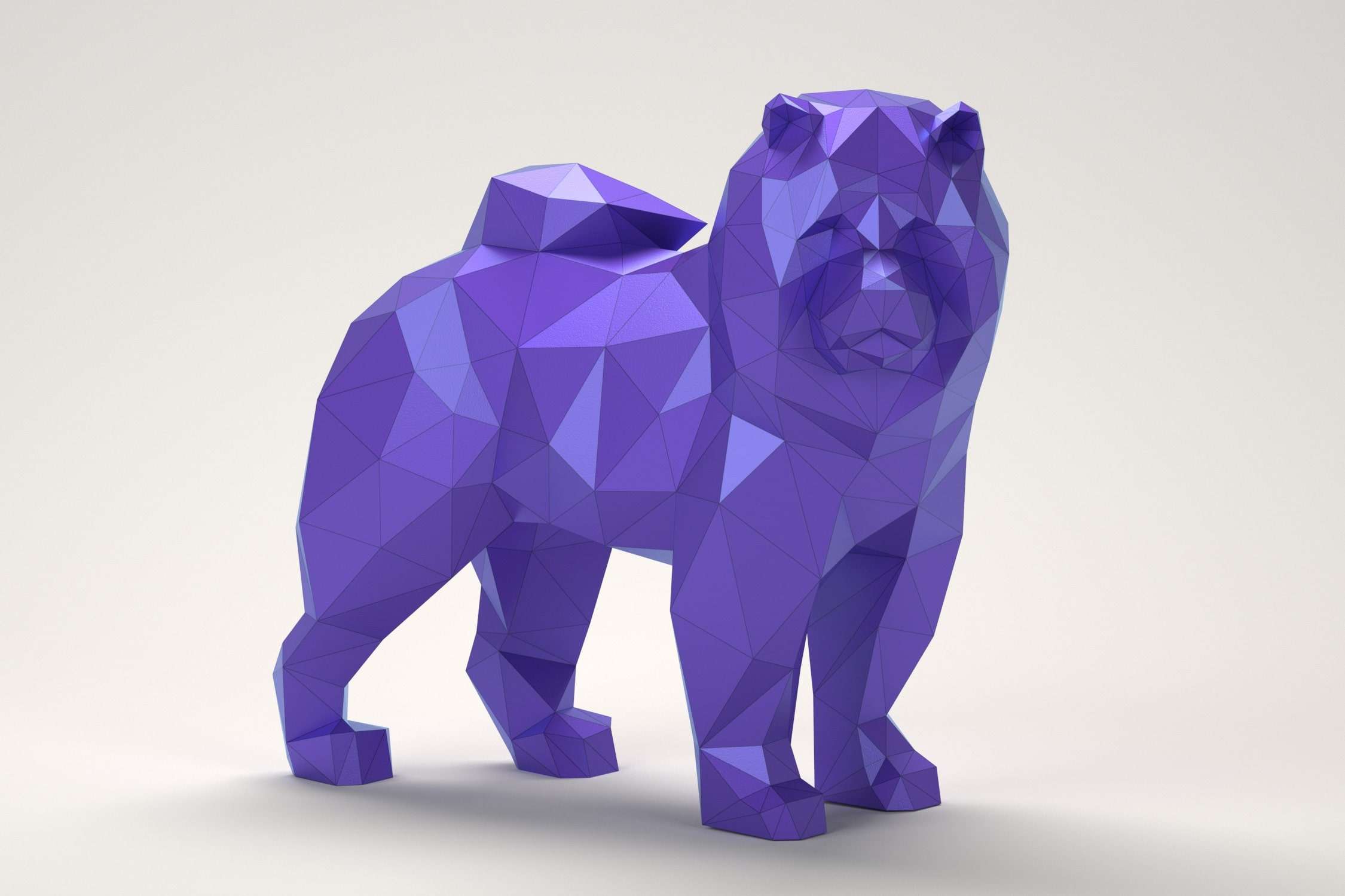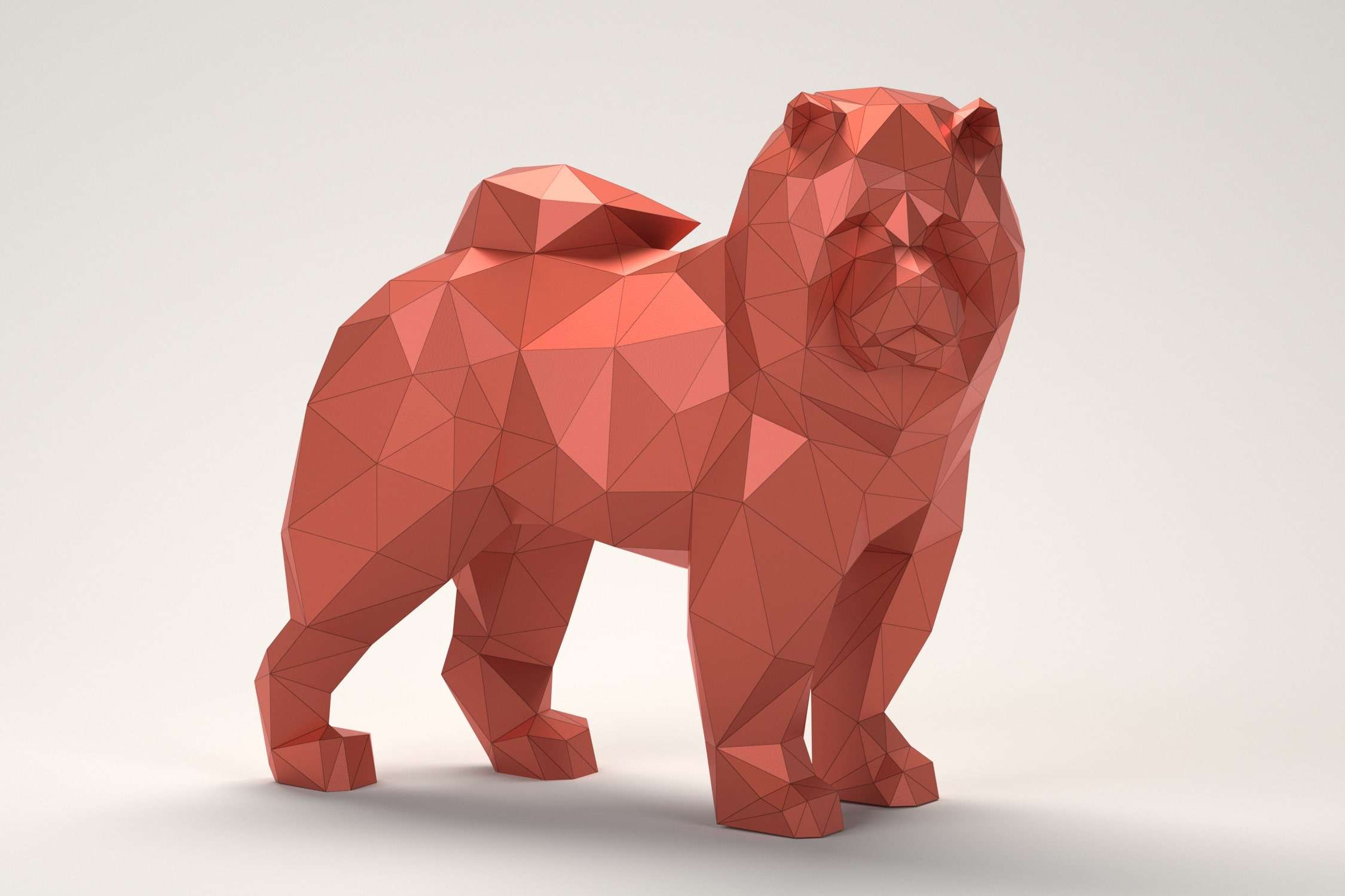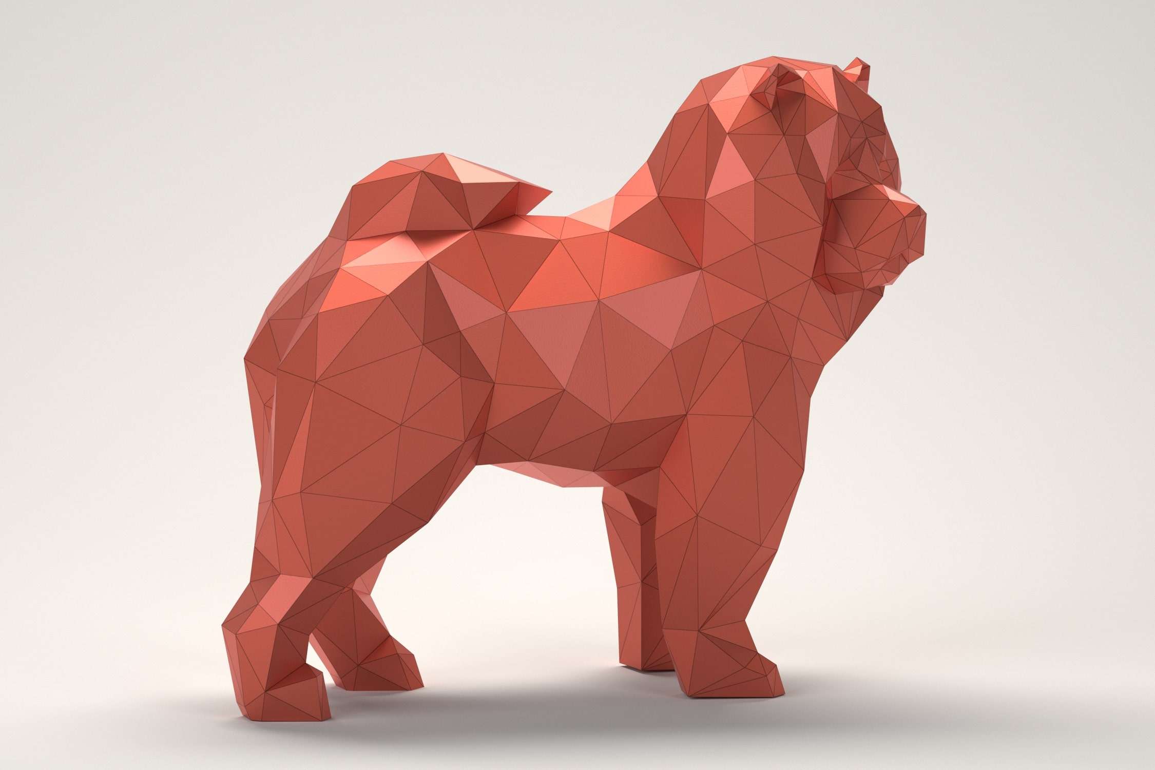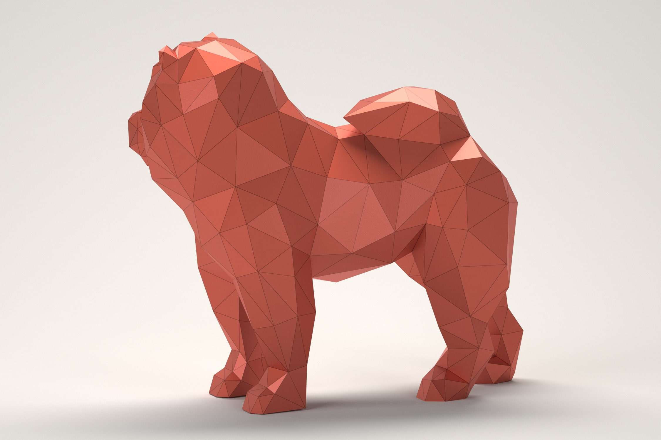 Polygonal sculpture of a Chow Chow dog, in real size.