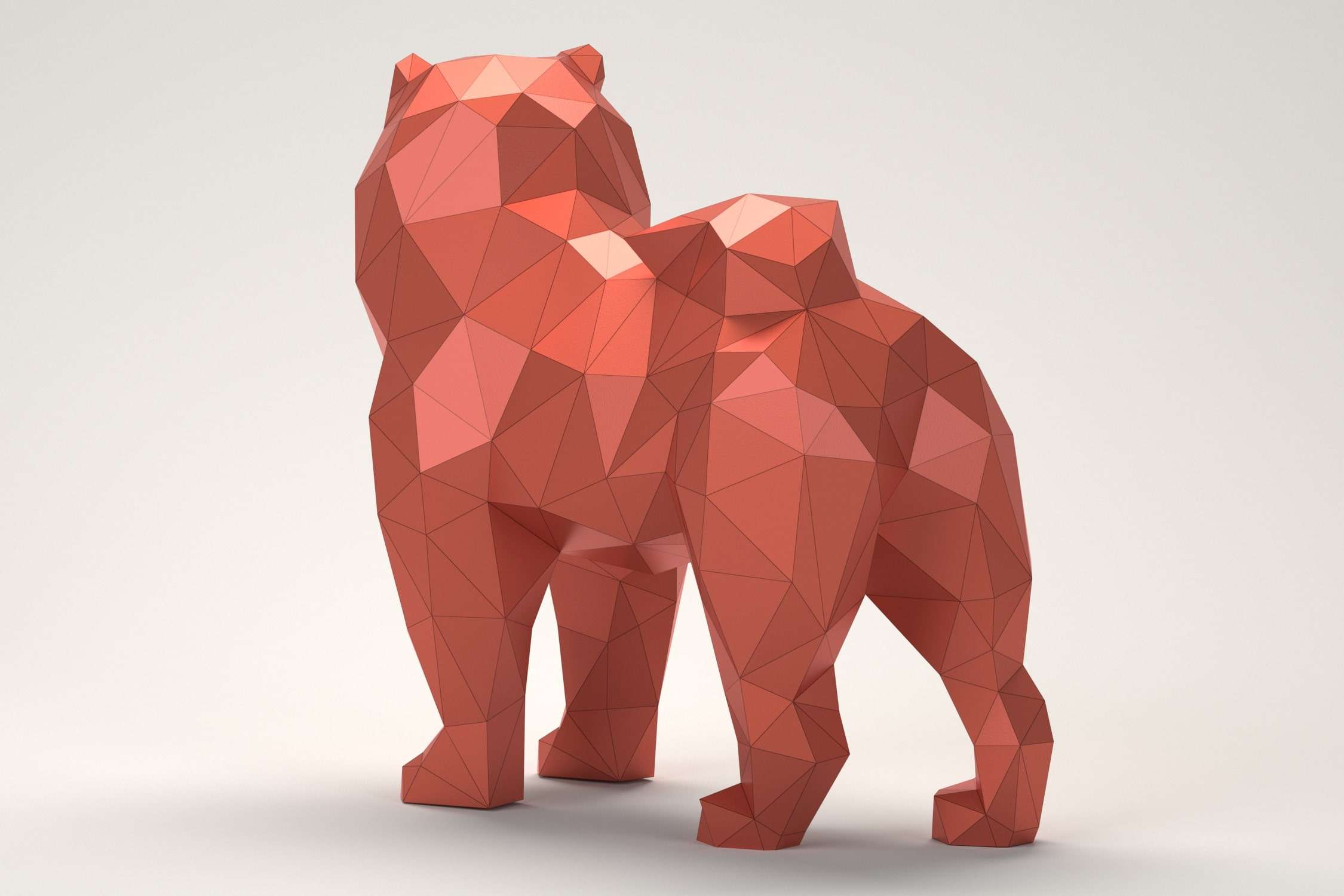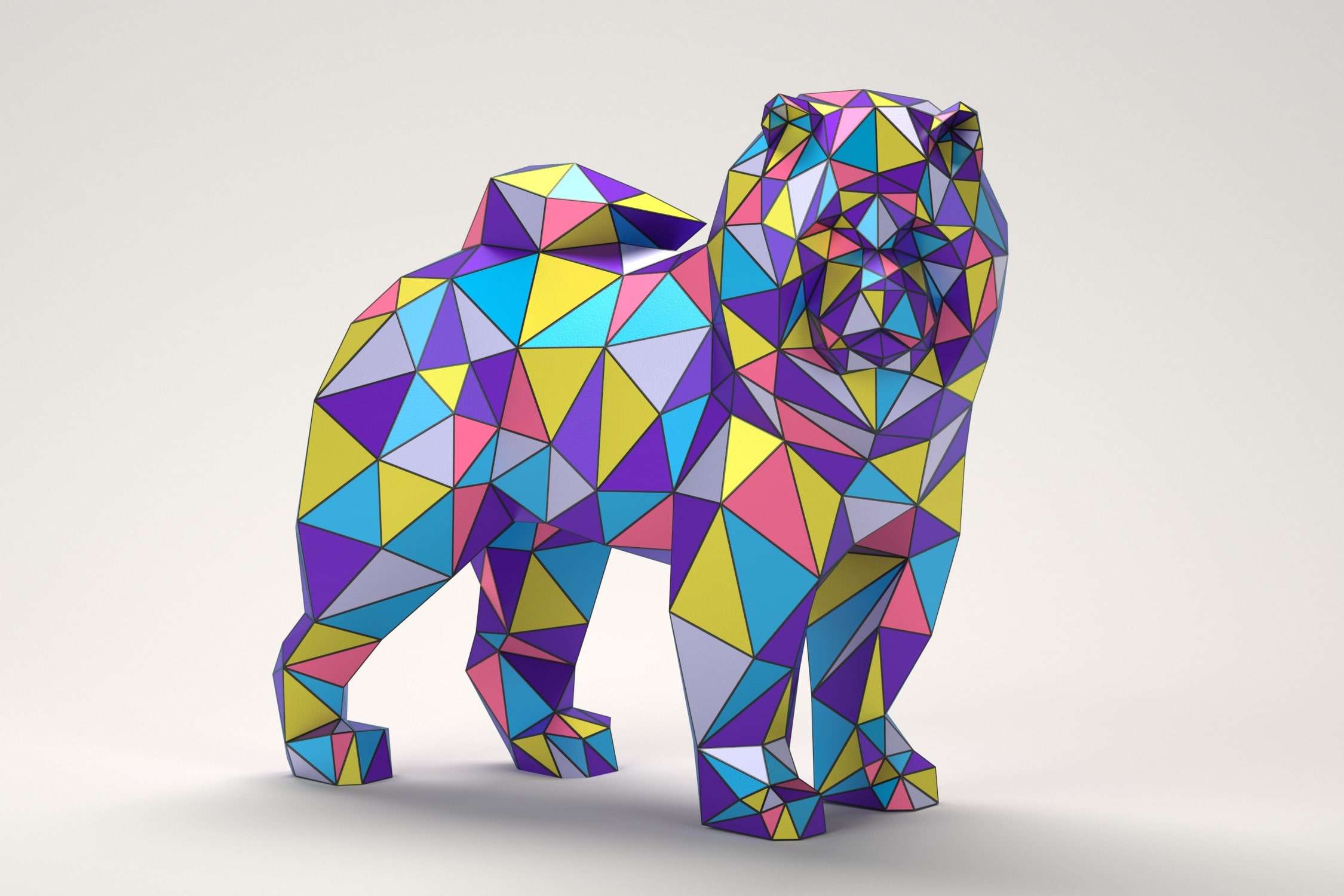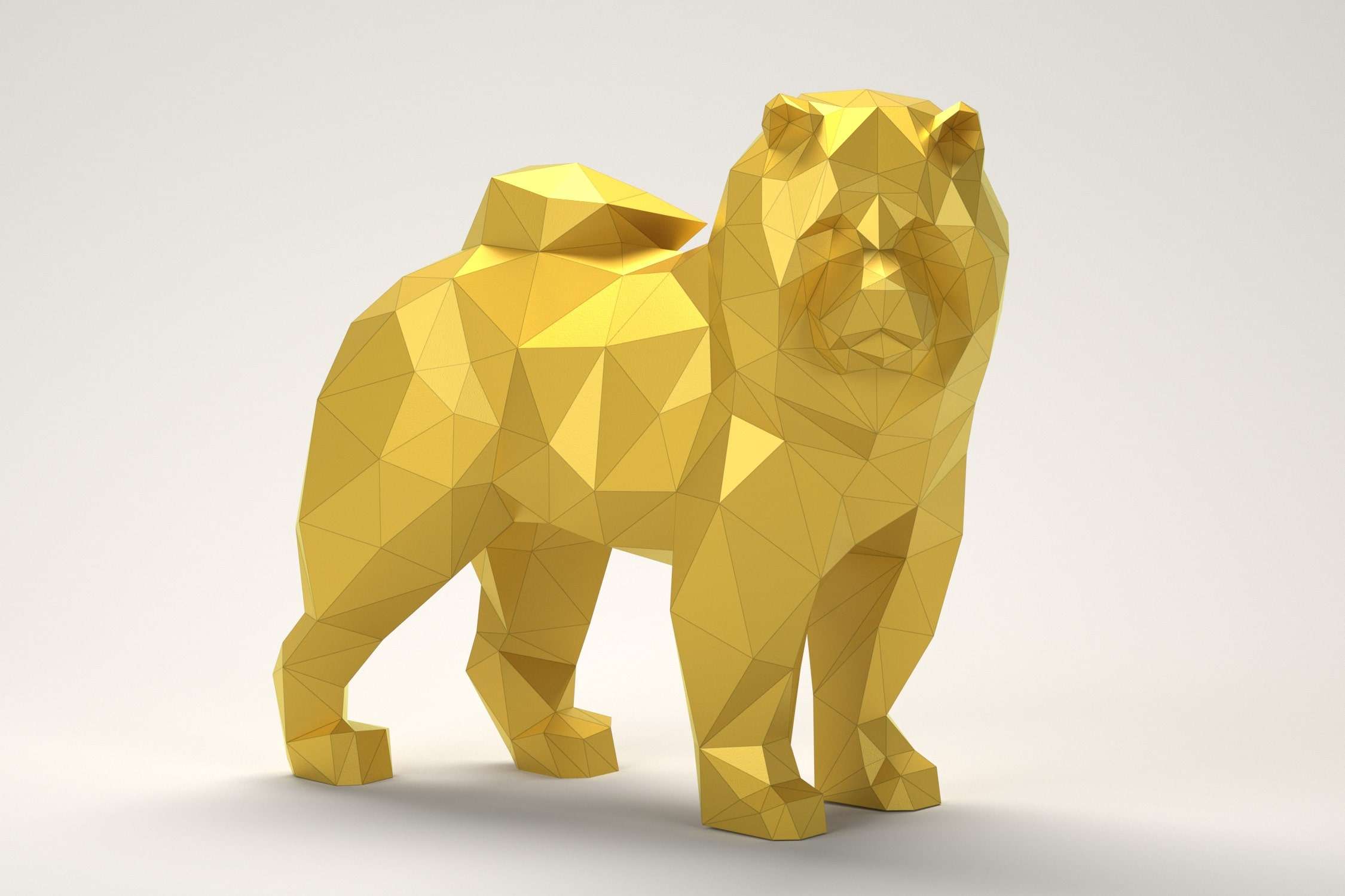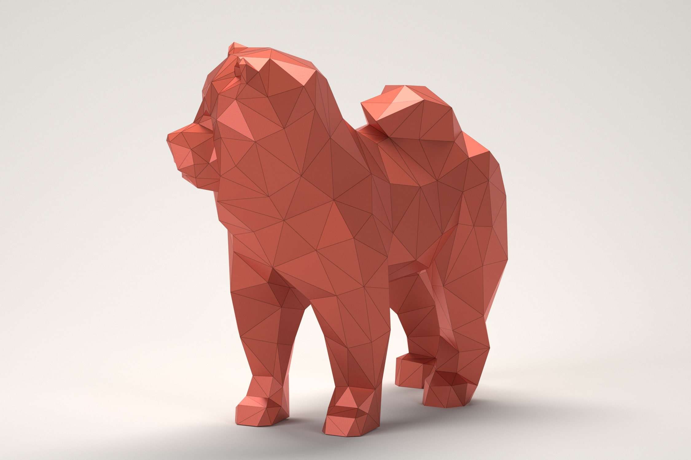 Polygonal sculpture of a Chow Chow dog, in real size.