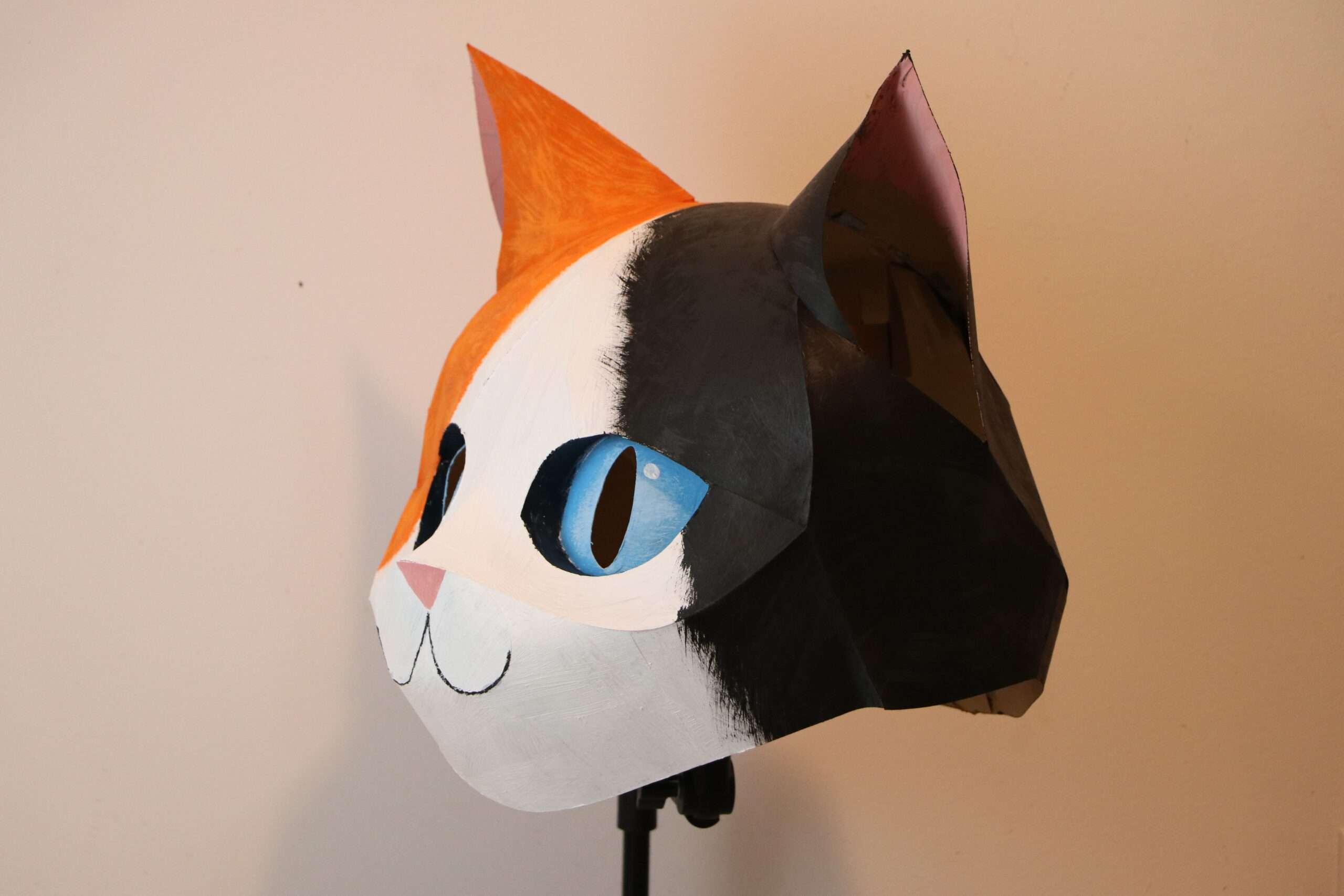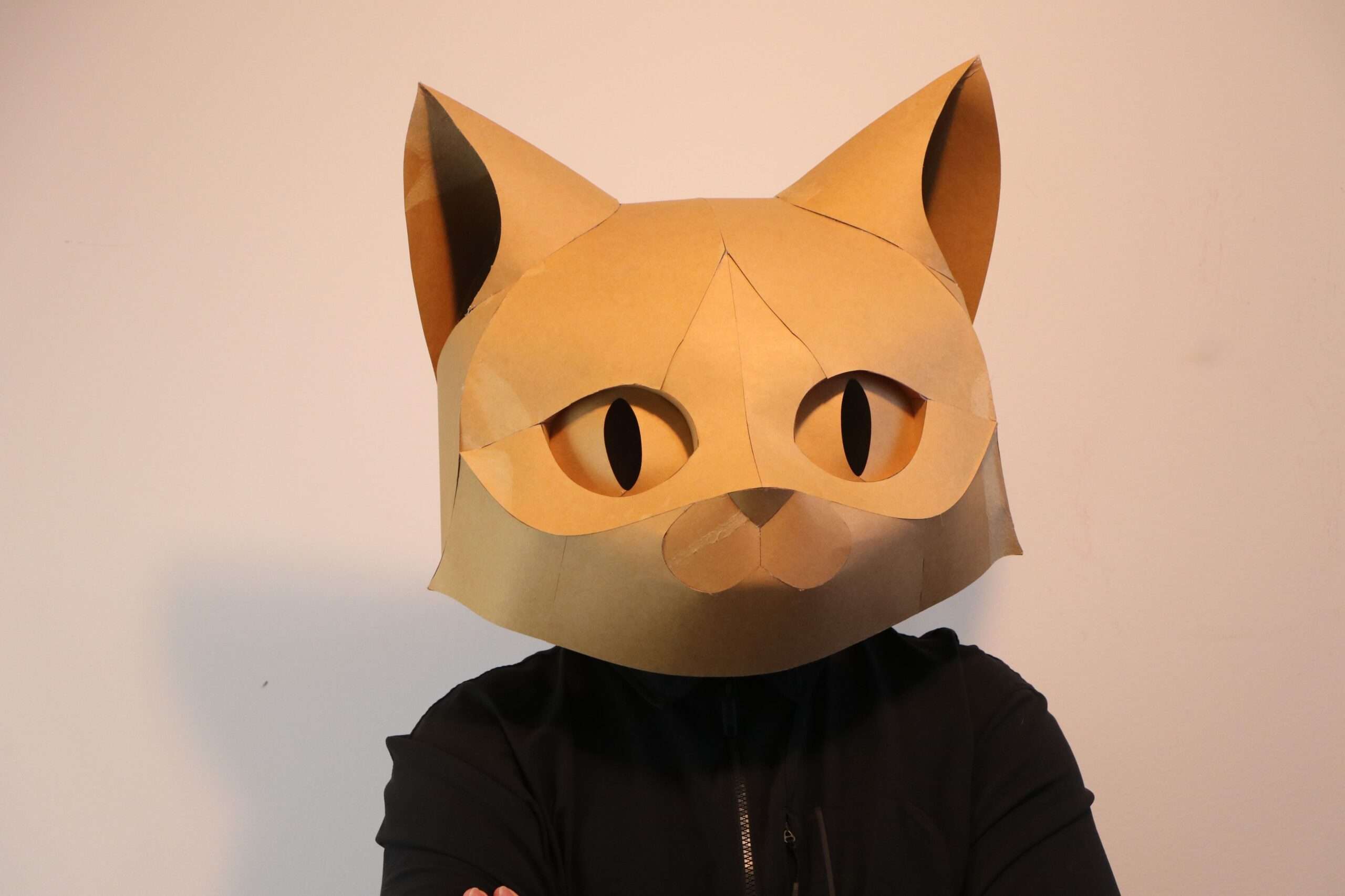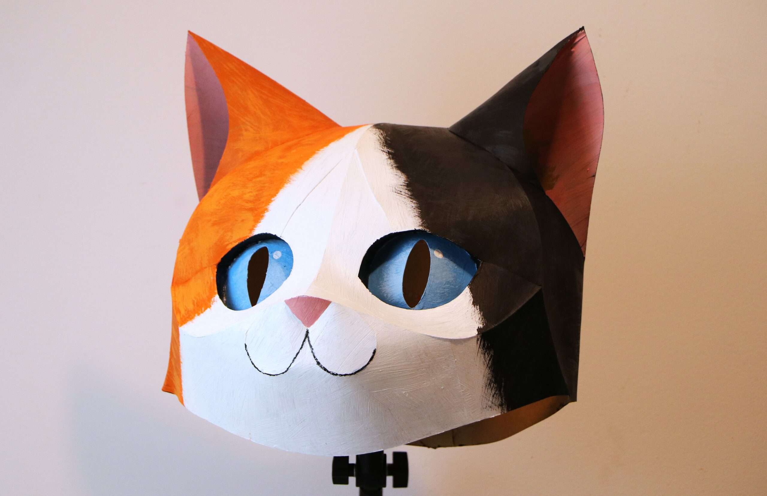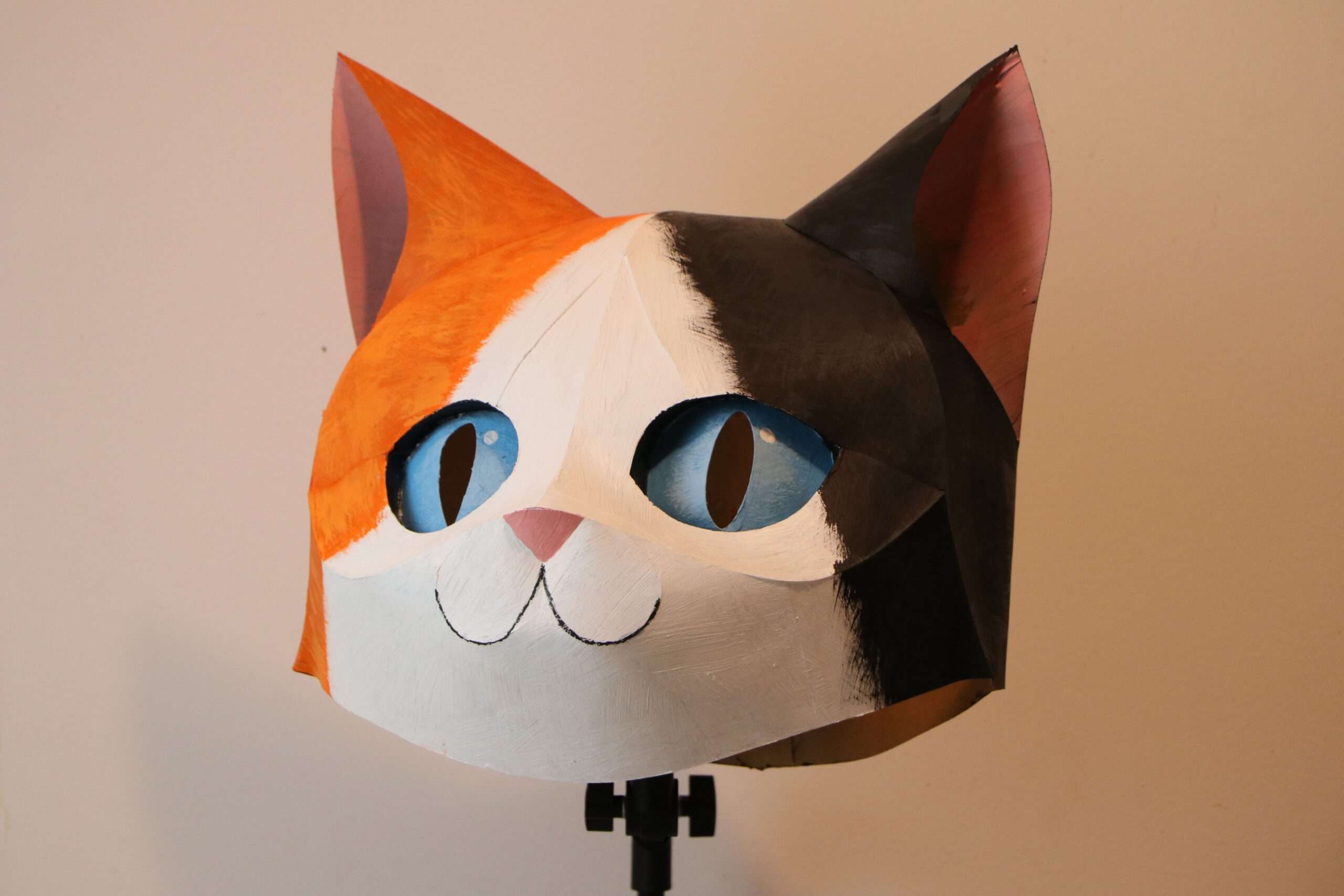 Create an adorable 3D cat mask designed especially for kids and creative play.