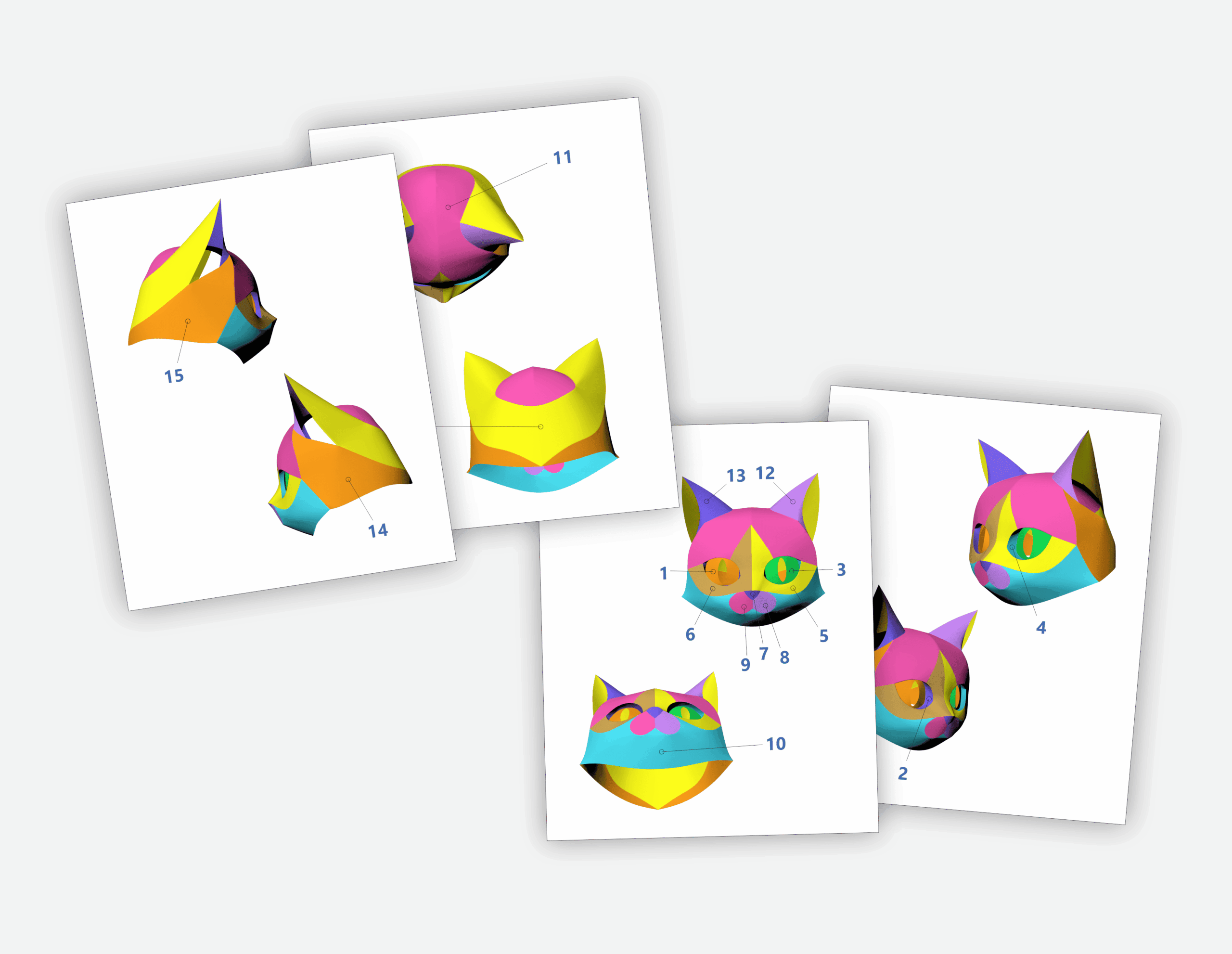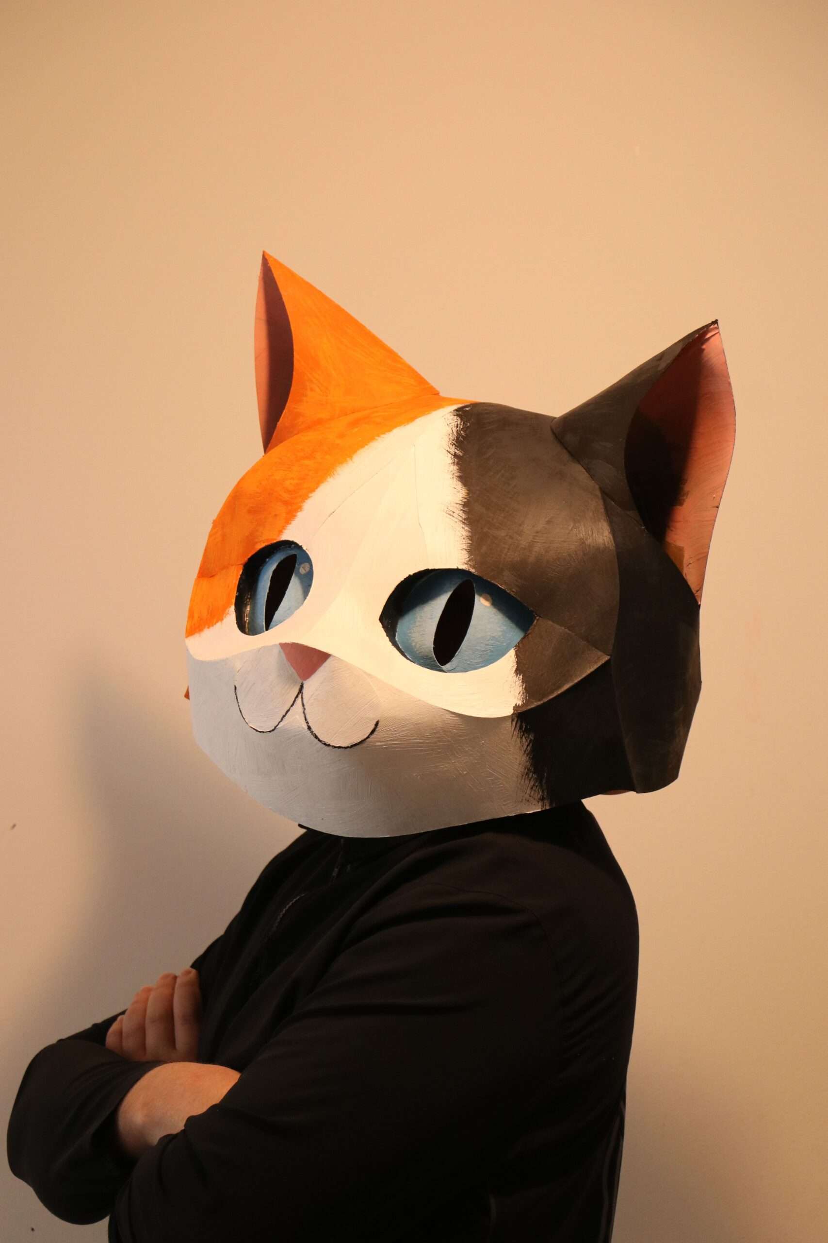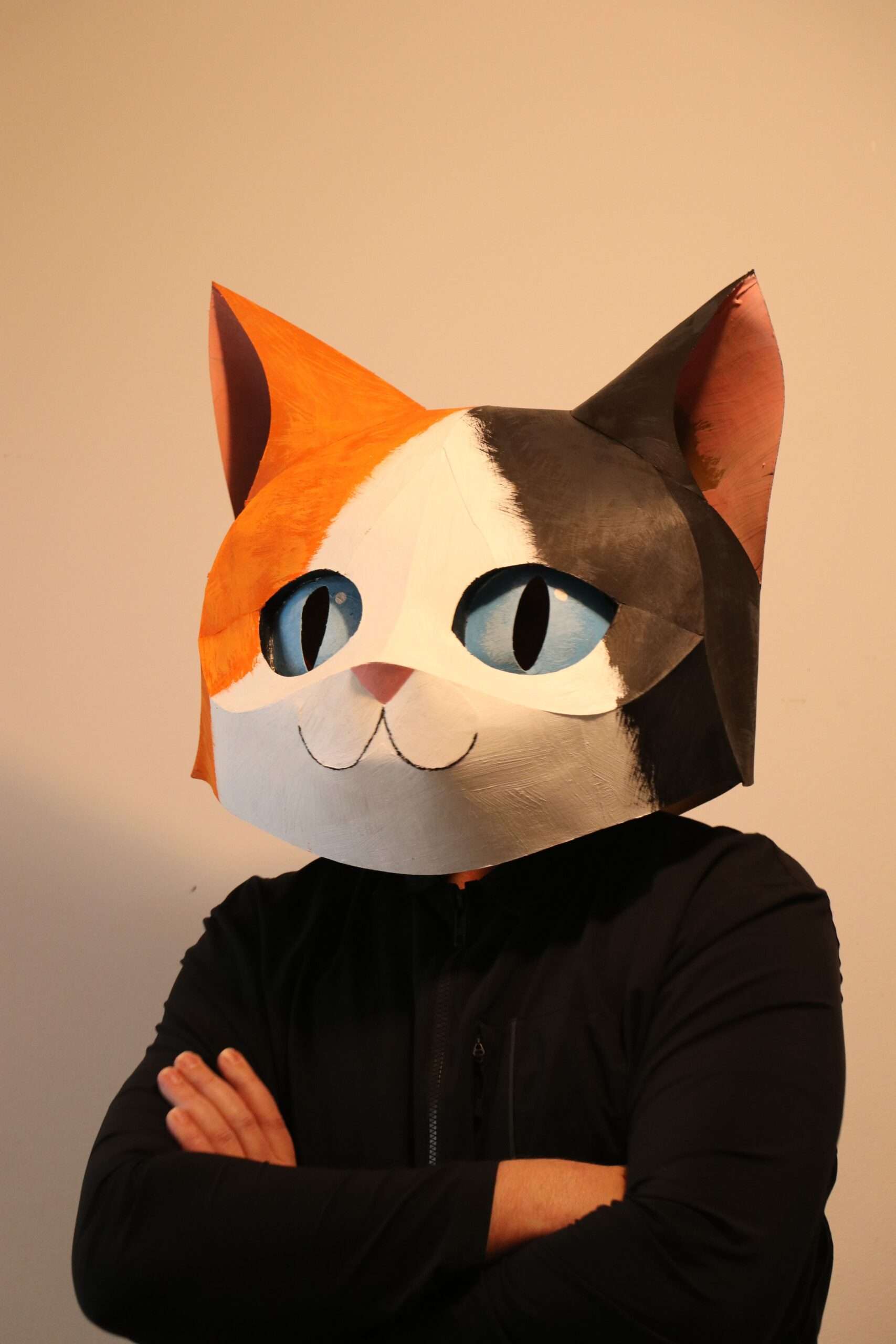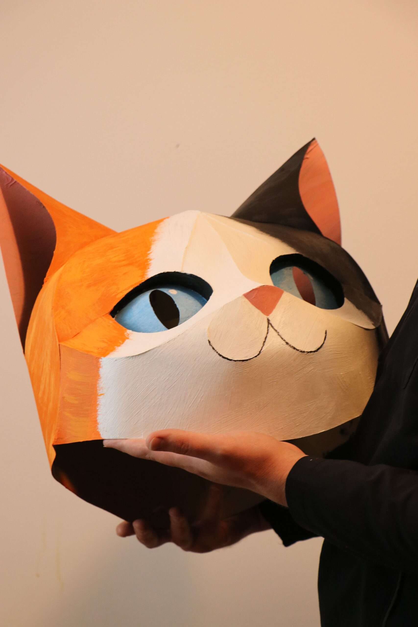 Create an adorable 3D cat mask designed especially for kids and creative play.