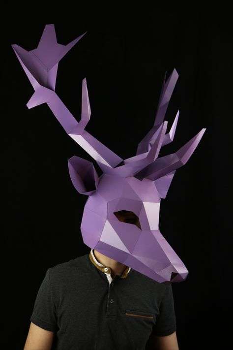 Deer Mask DIY, Low Poly Mask Deer, Paper Craft Mask Deer, Pdf Template Poligonal 3D Mask