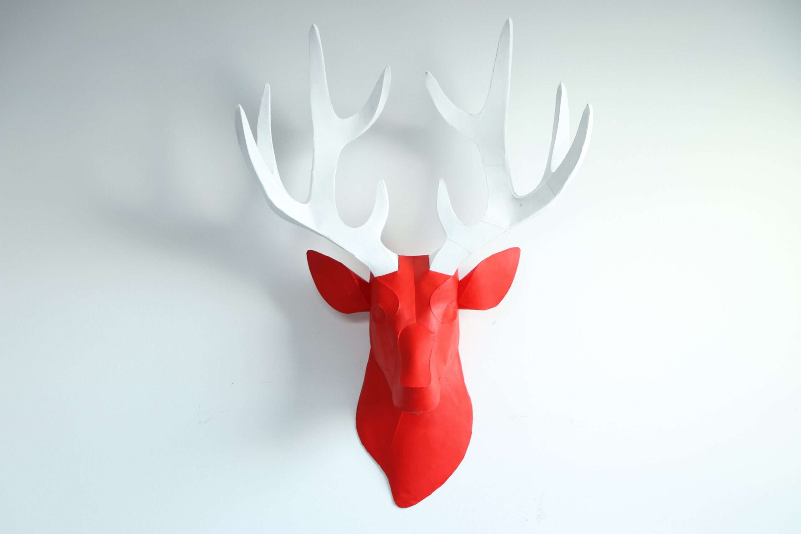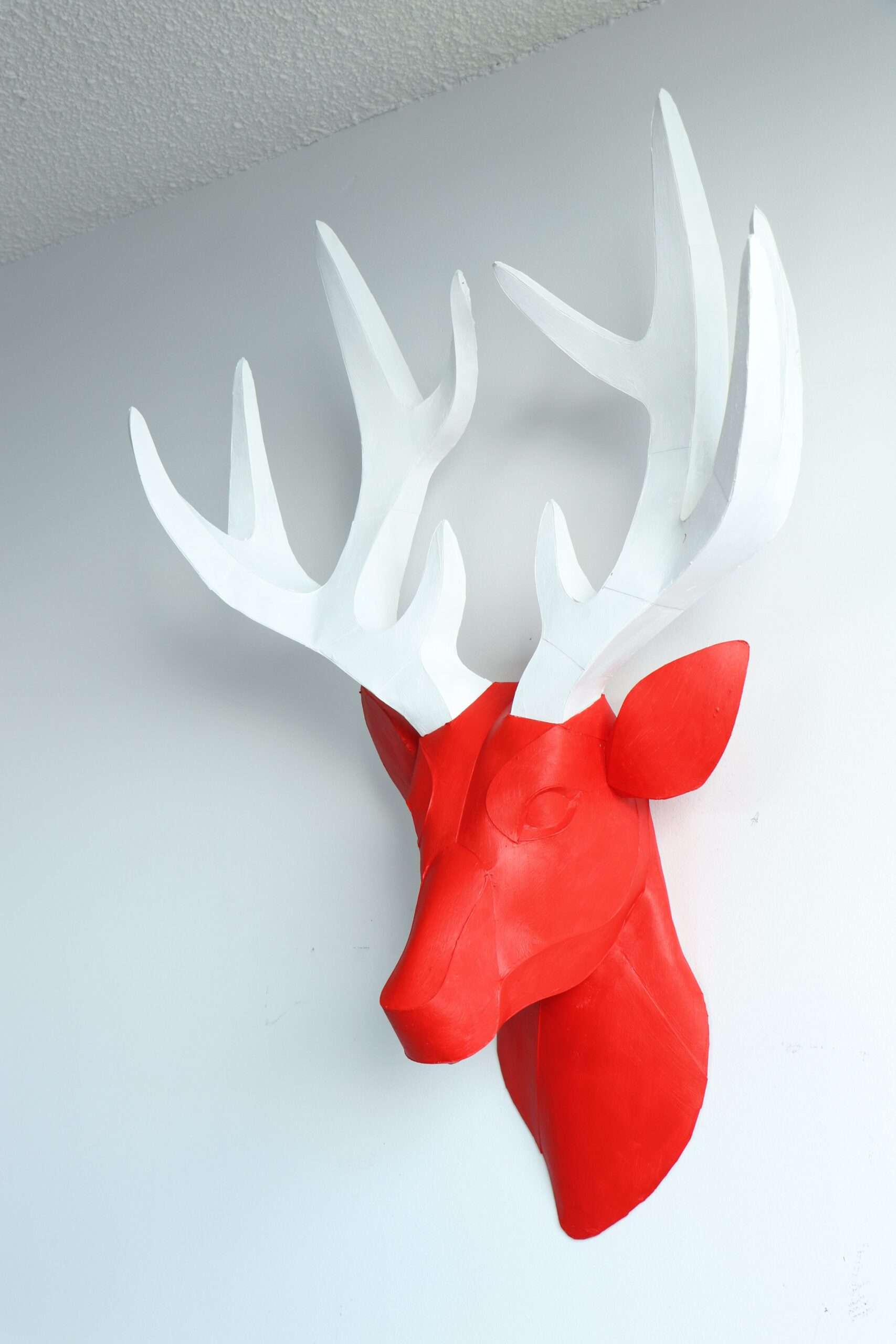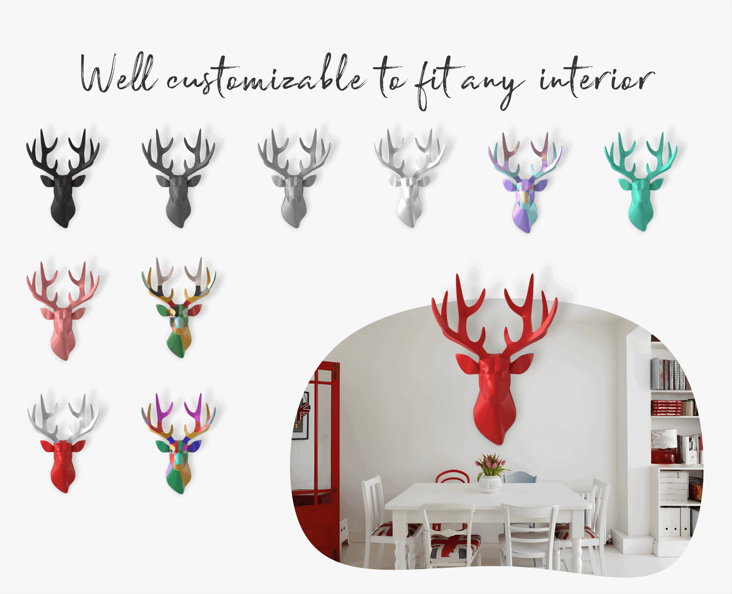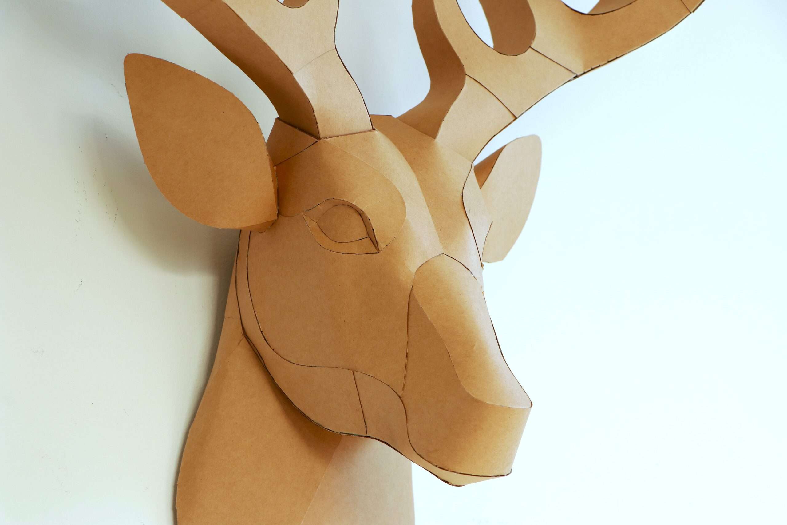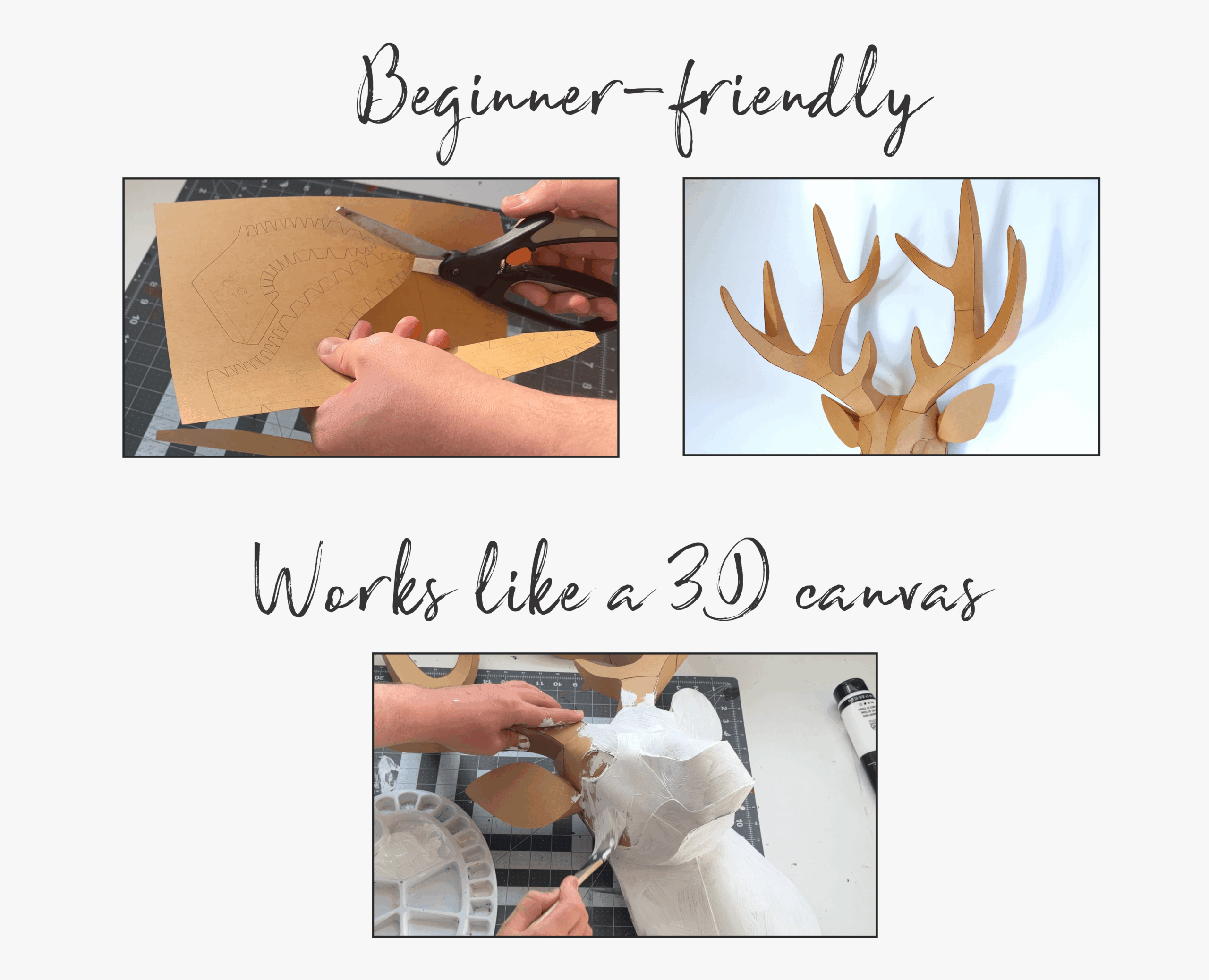 DIY Deer Head Décor Papercraft – Modern Style, Detachable Antlers, Paintable 3D Canvas