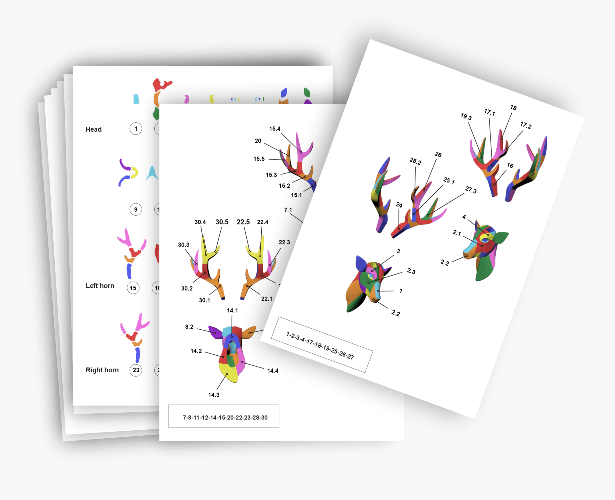 ✔ 21 sheets of A4 or Letter-size cardstock for the head and antlers (250–350 gsm works perfectly for this scale).
