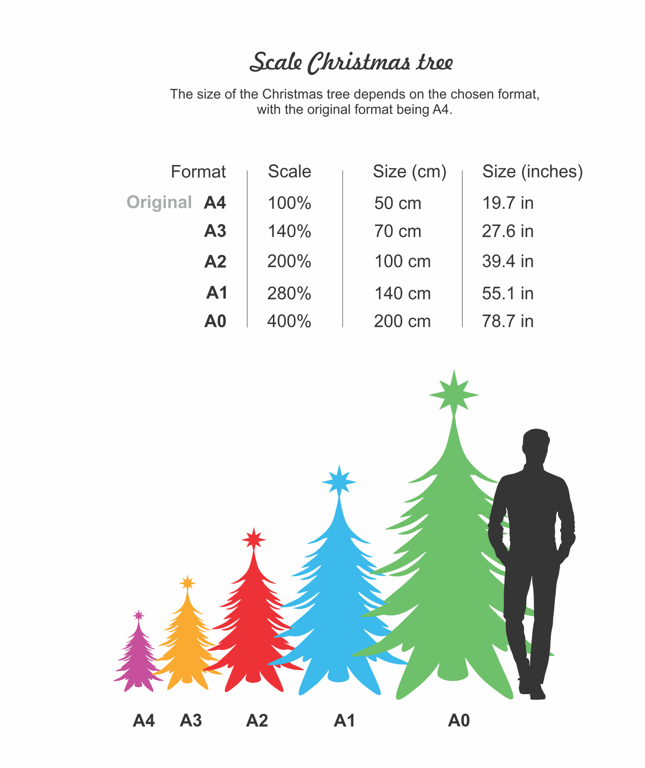 Simply print the templates in poster mode on any office printer, tape the sheets together, and use them as full-size stencils to create a large, durable Christmas tree.