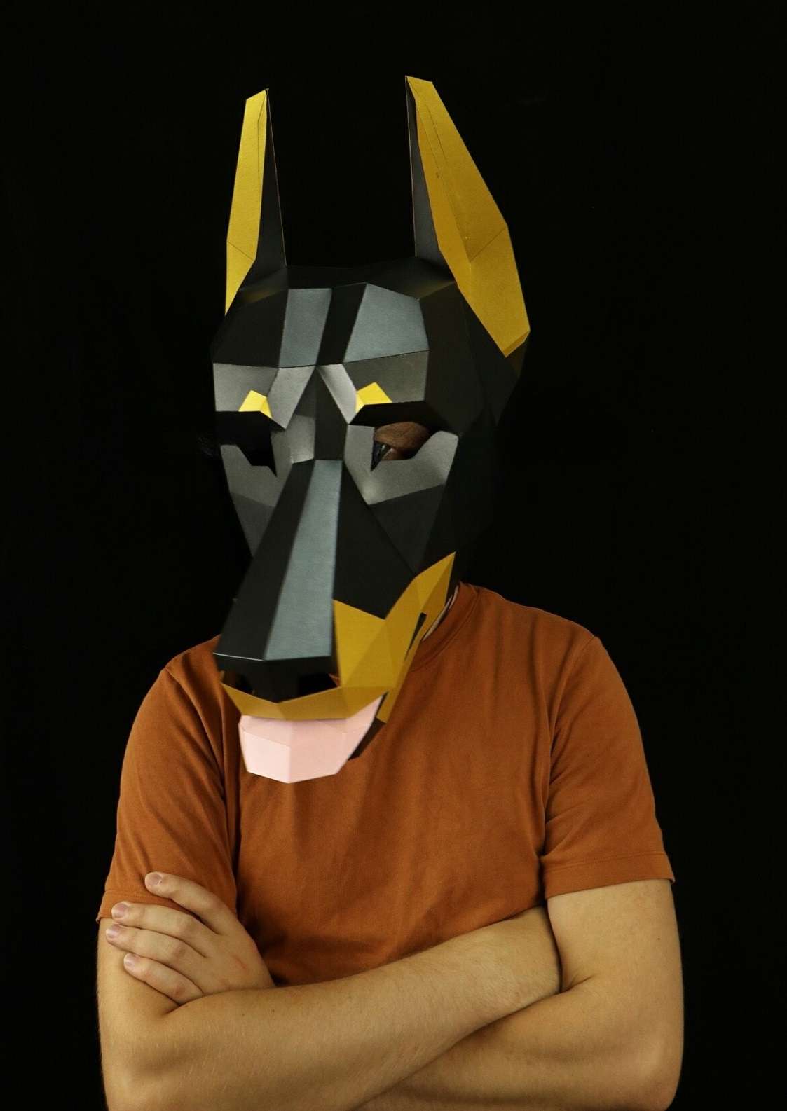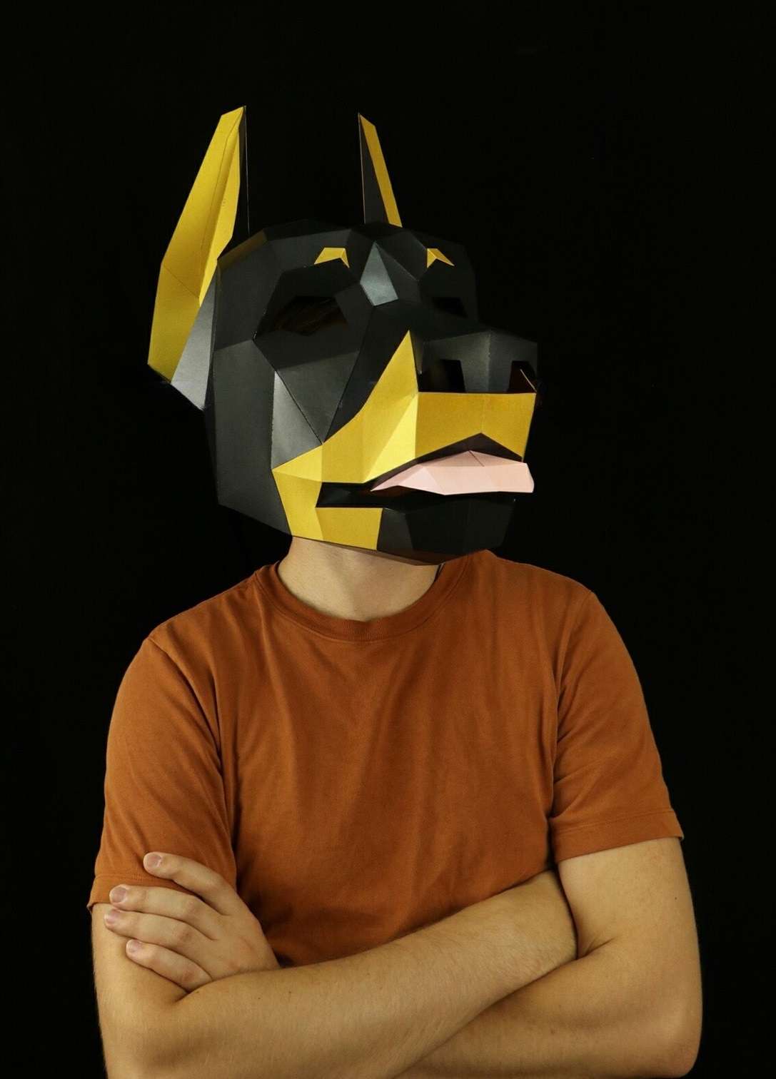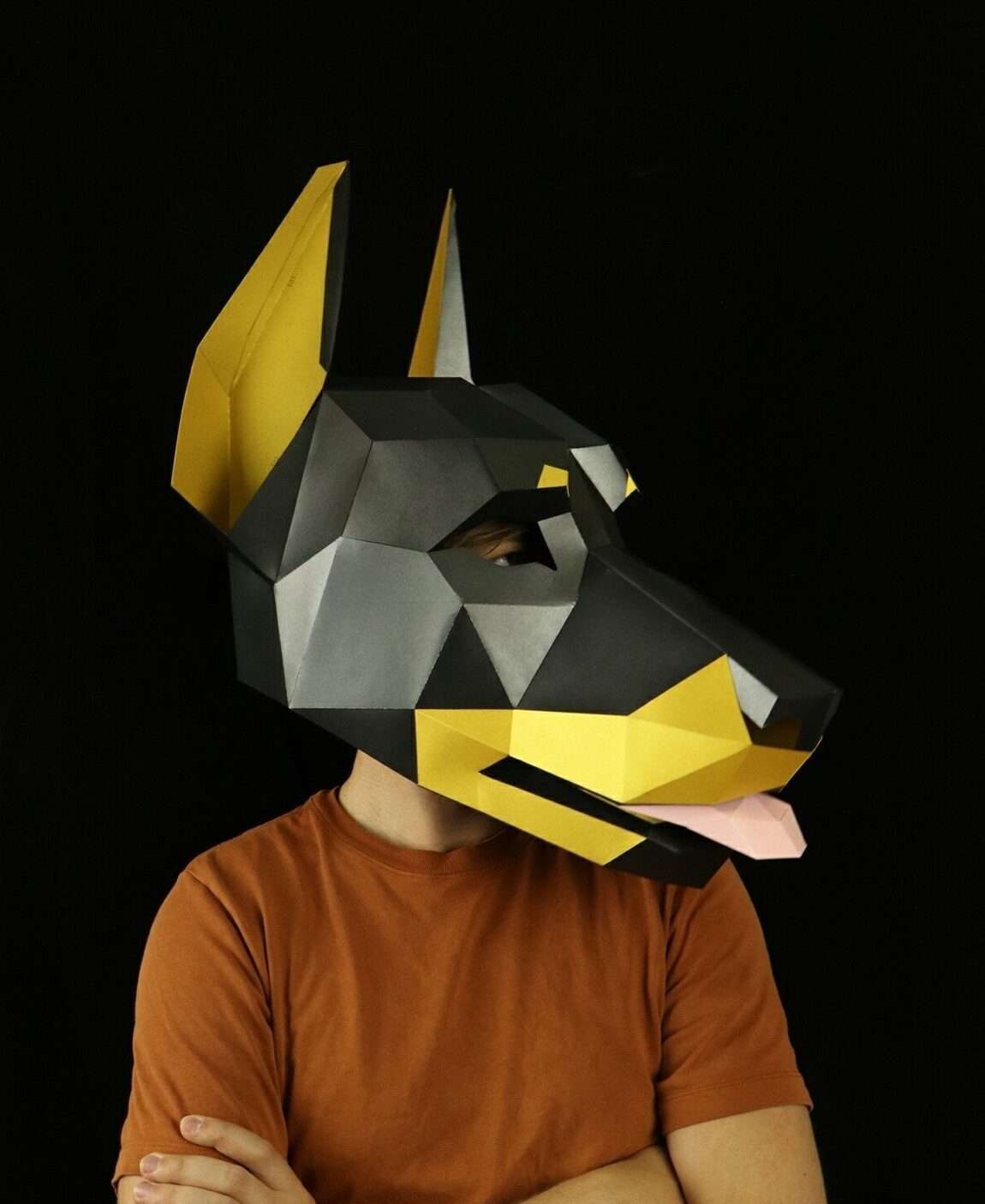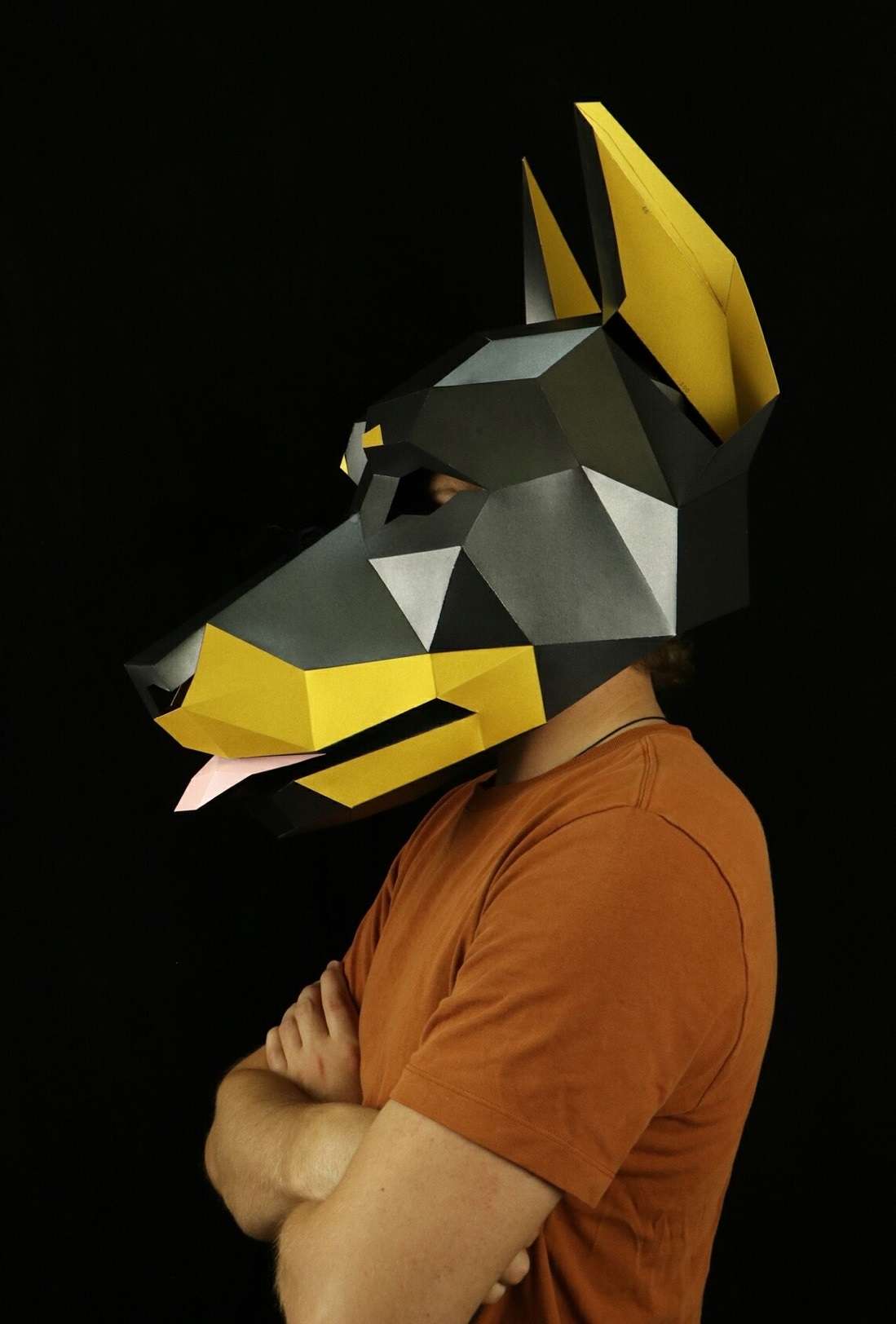 Dog mask with an elongated shape, upright ears, and clear color accents. The build is structured and easy to follow.