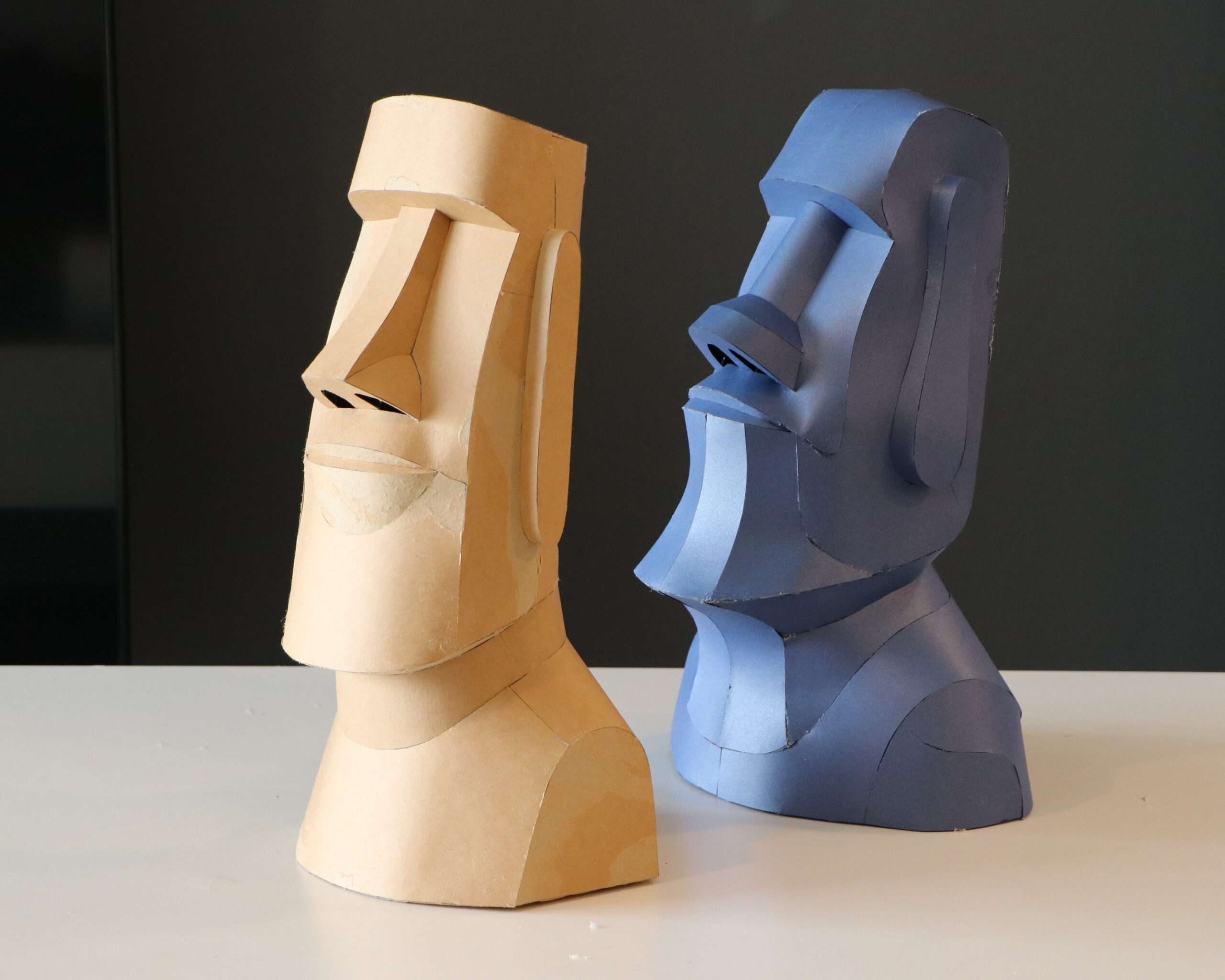 Create your own Easter Island Moai head with this bundle of two stunning papercraft designs. The set includes both a simple and a more refined version, allowing you to choose between an easy build or a smoother, more detailed sculpture with flowing lines. Both designs create a recognizable and striking decor piece that fits perfectly into modern interiors.