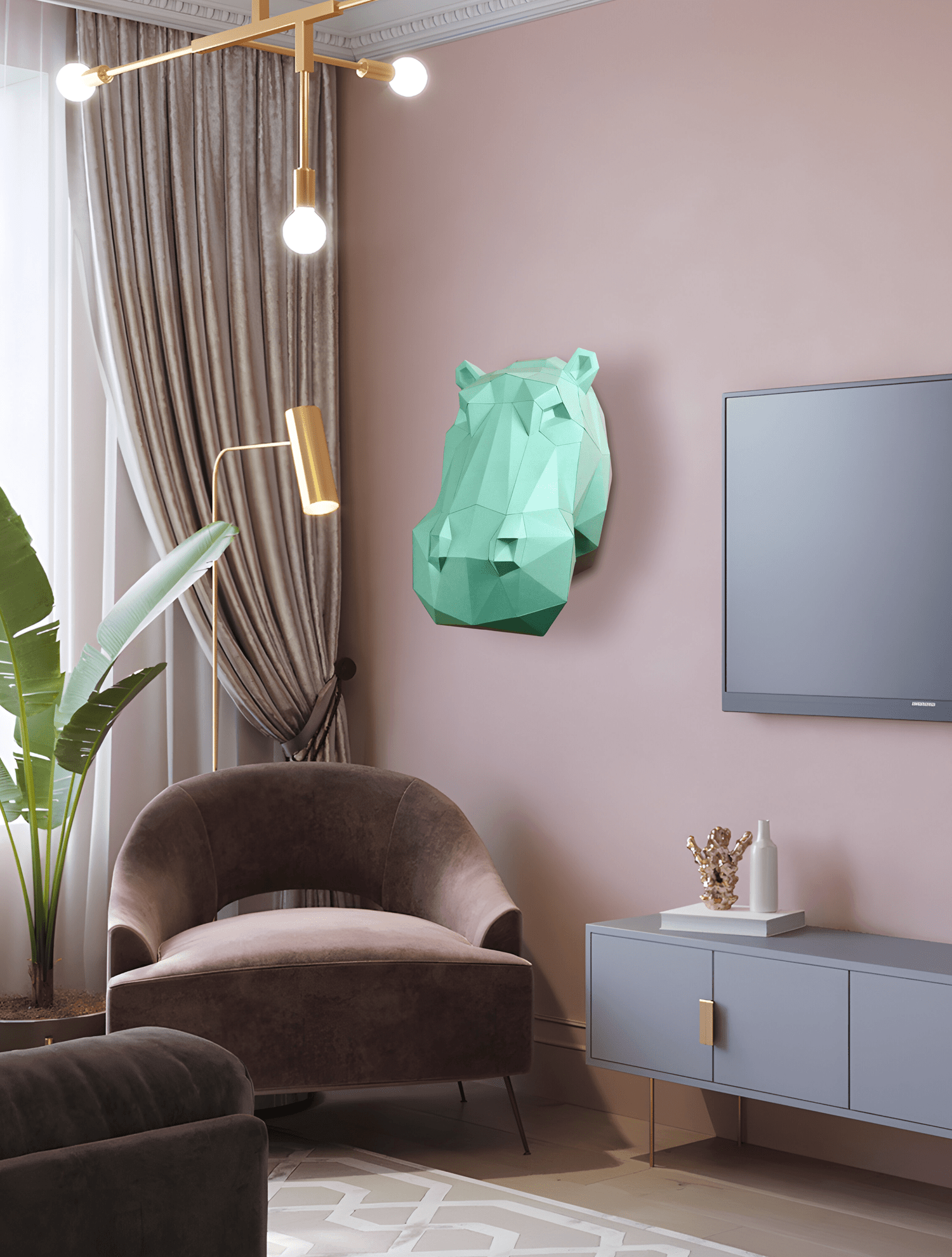 Hippo head, papercraft wall decor, PDF Pattern
