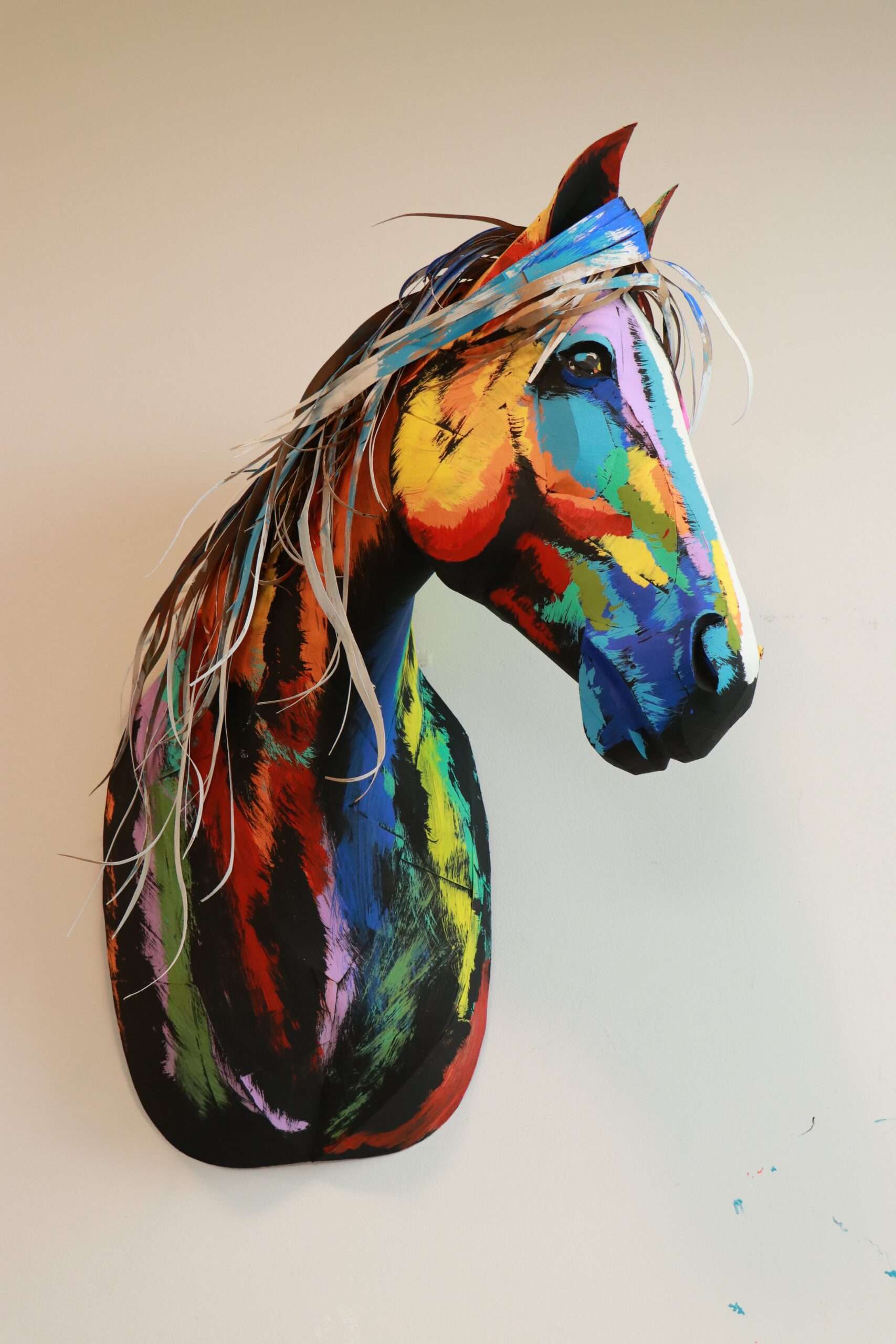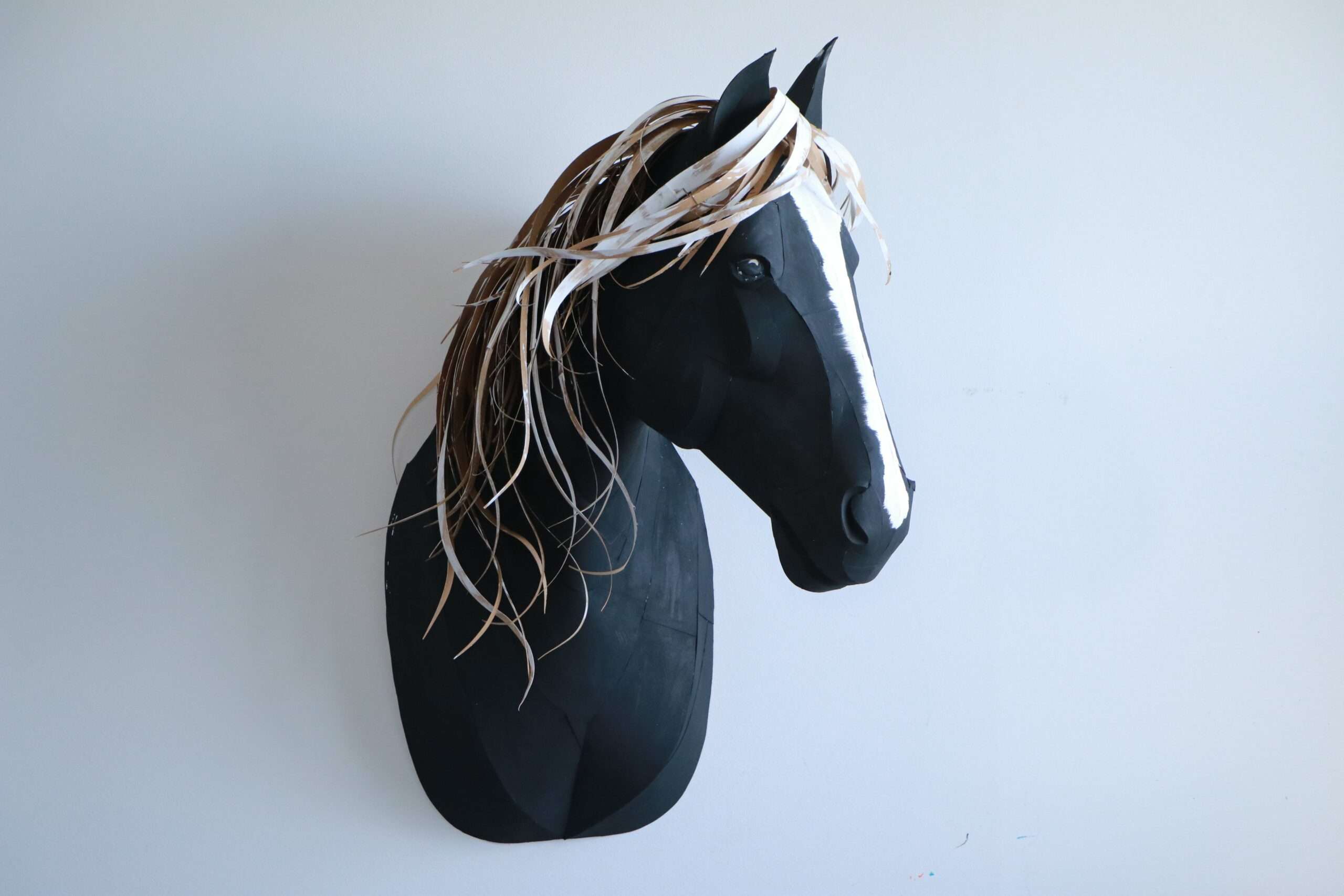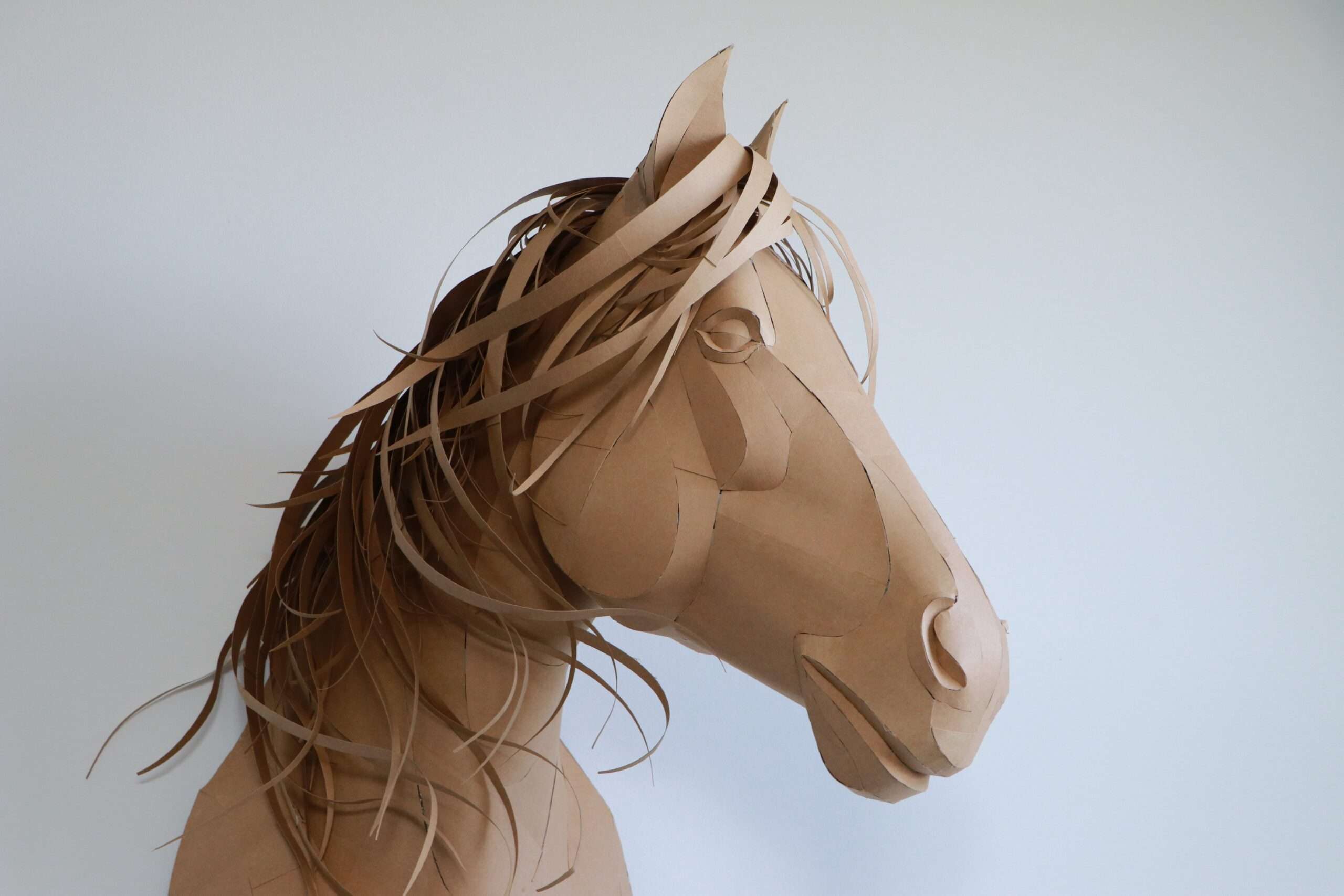 A life-size horse head papercraft template with expressive form and a flowing customizable mane. Designed for advanced builds, it creates a dynamic and highly realistic wall sculpture.