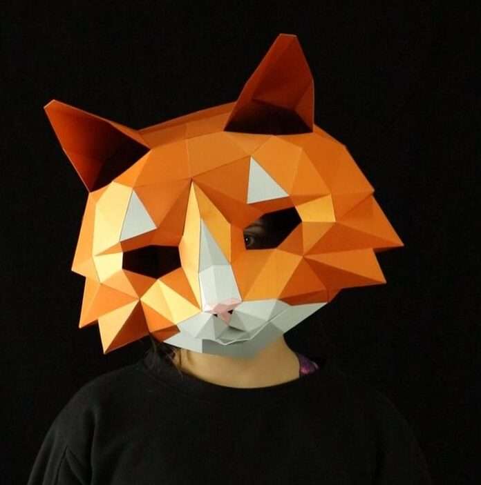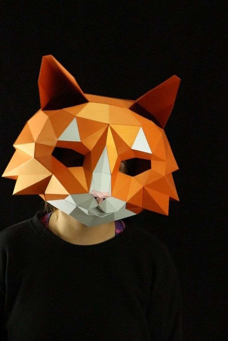 Cat mask with soft shape and subtle facial details. Clear color structure and smooth step-by-step assembly.