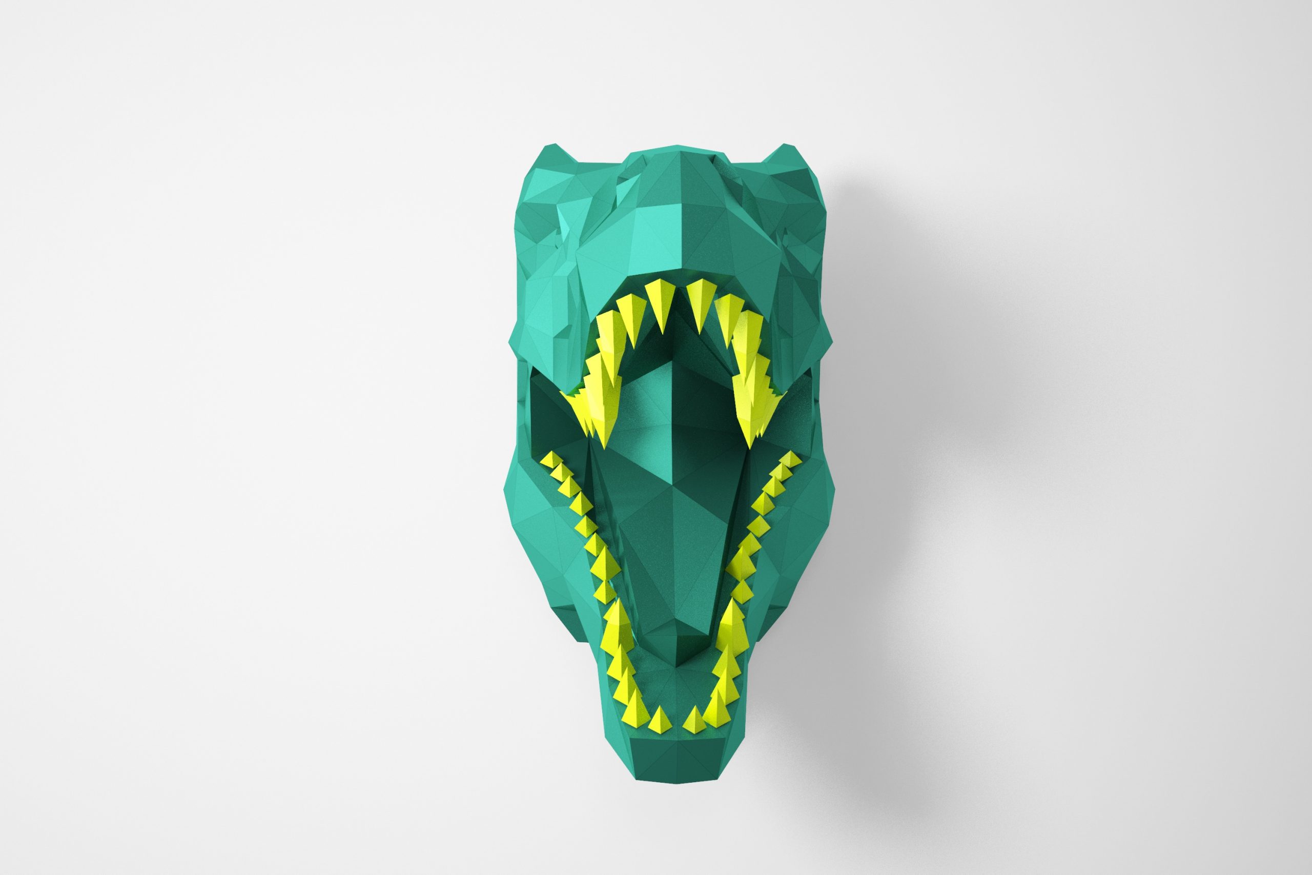 This is a large dinosaur wall sculpture. The head is huge, like a real tyrannosaurus rex. Clear instructions make it easy to assemble the figurine. The figurine is quite simple for this scale, although assembly can take a long time due to the large amount of detail and teeth. The rear disk adjacent to the wall is recommended to be made of dense material.