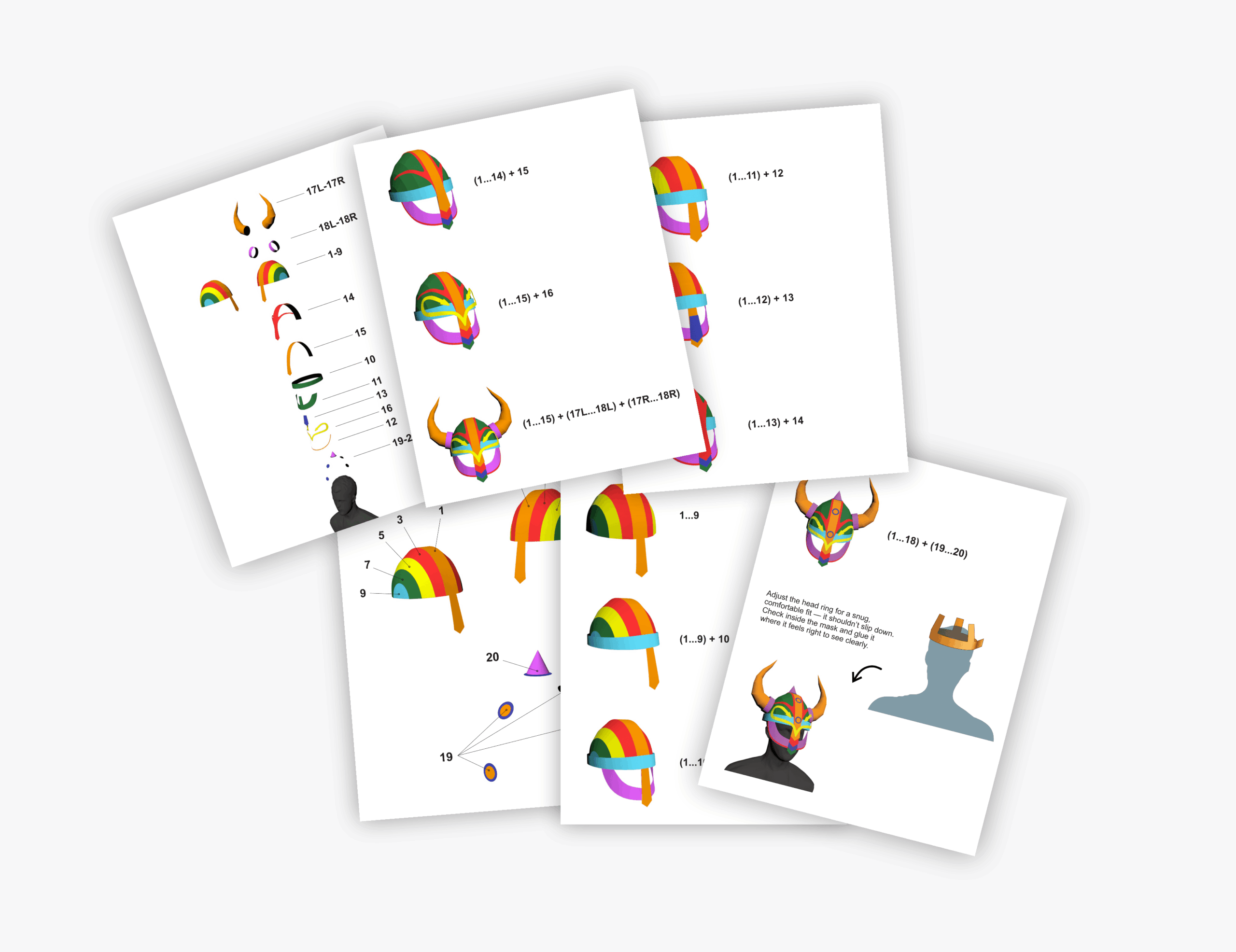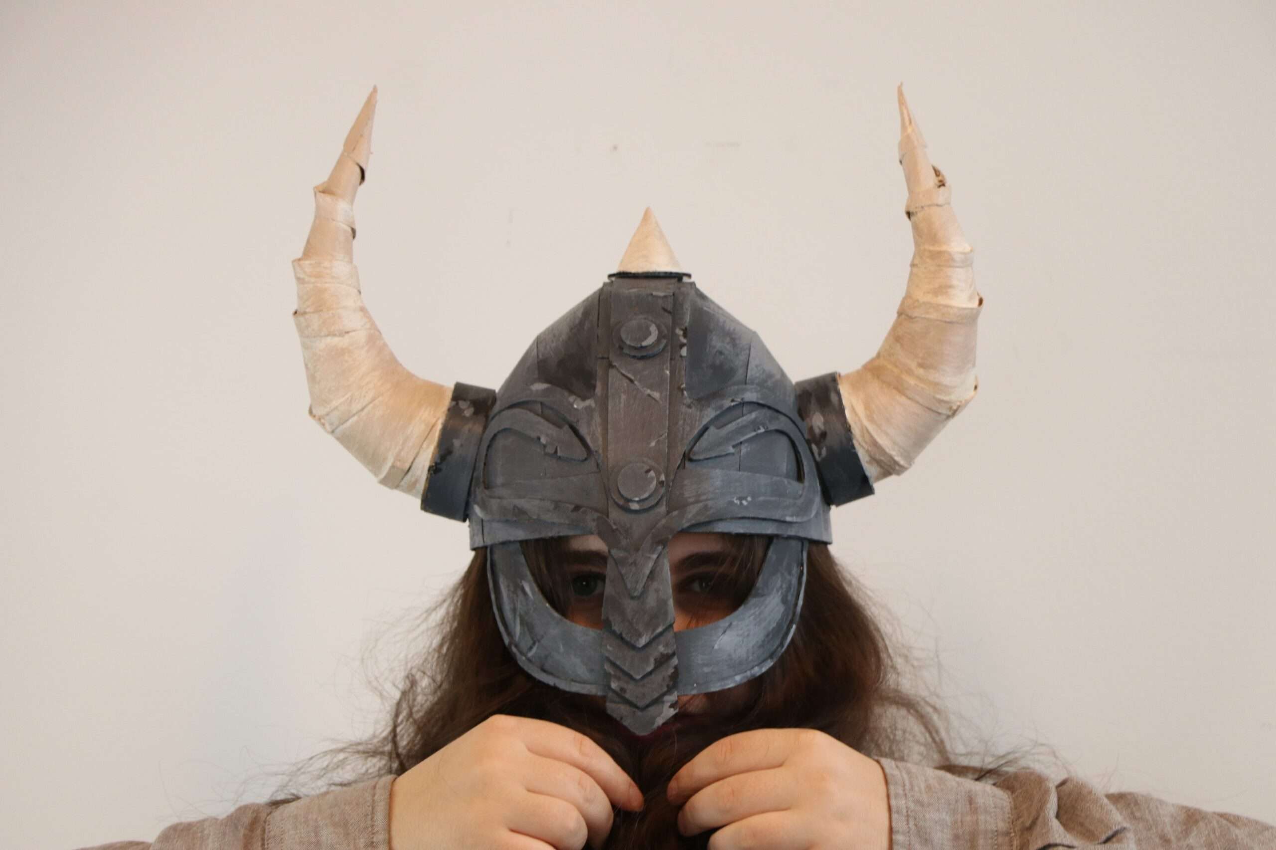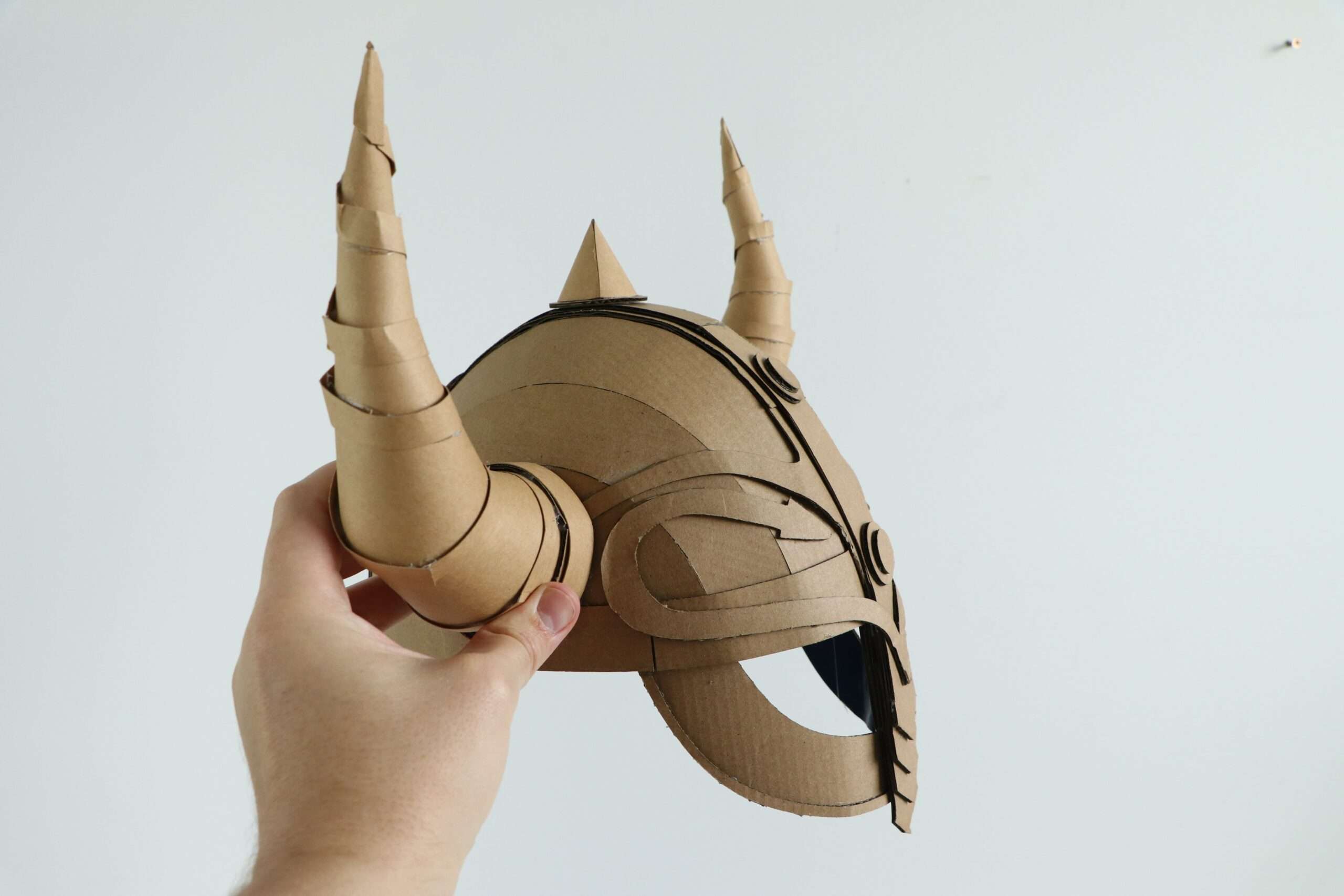 A bold Viking helmet papercraft template with iconic horns and strong character. Easy to assemble and perfect for cosplay, costumes, and creative DIY projects.
