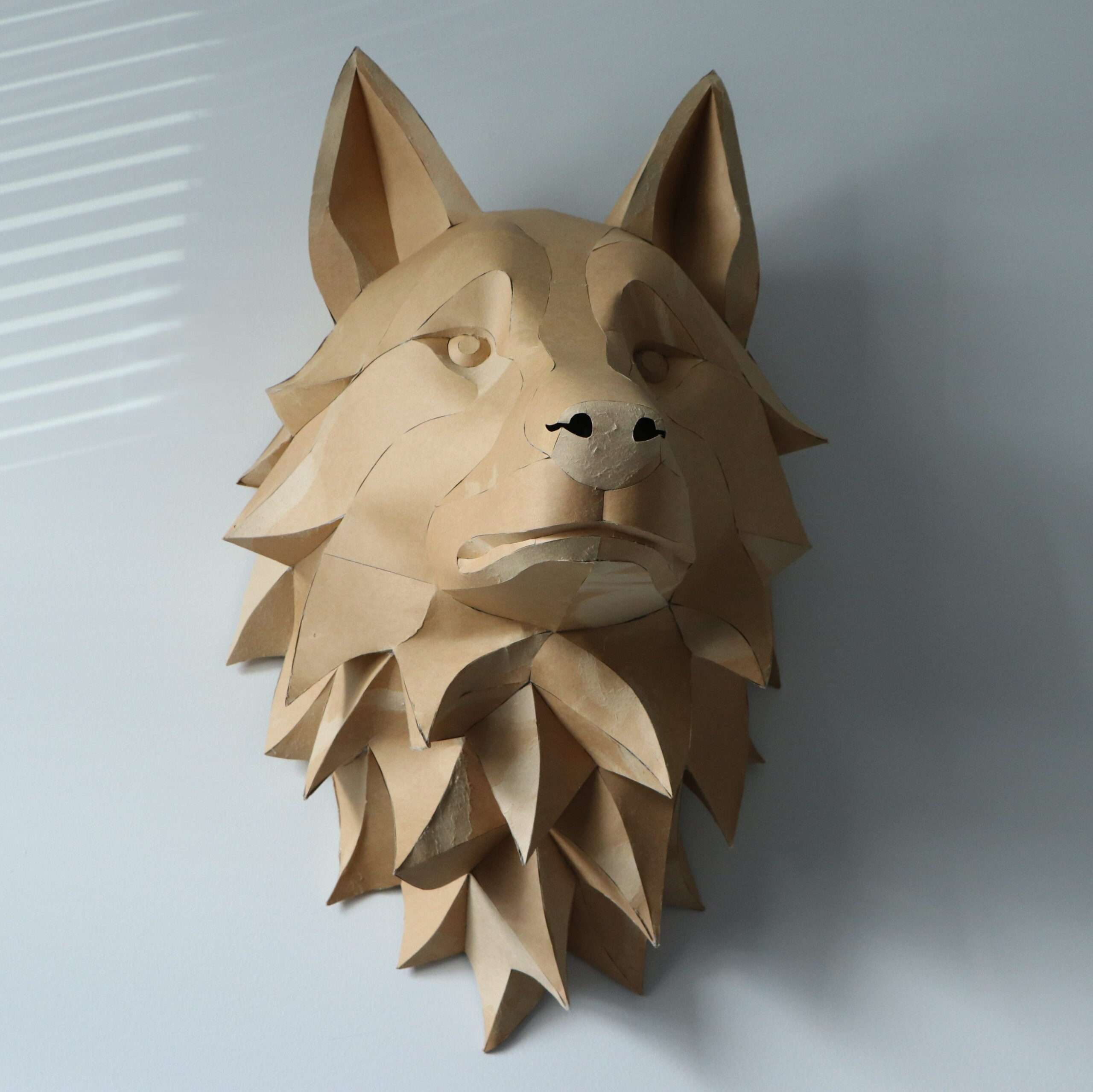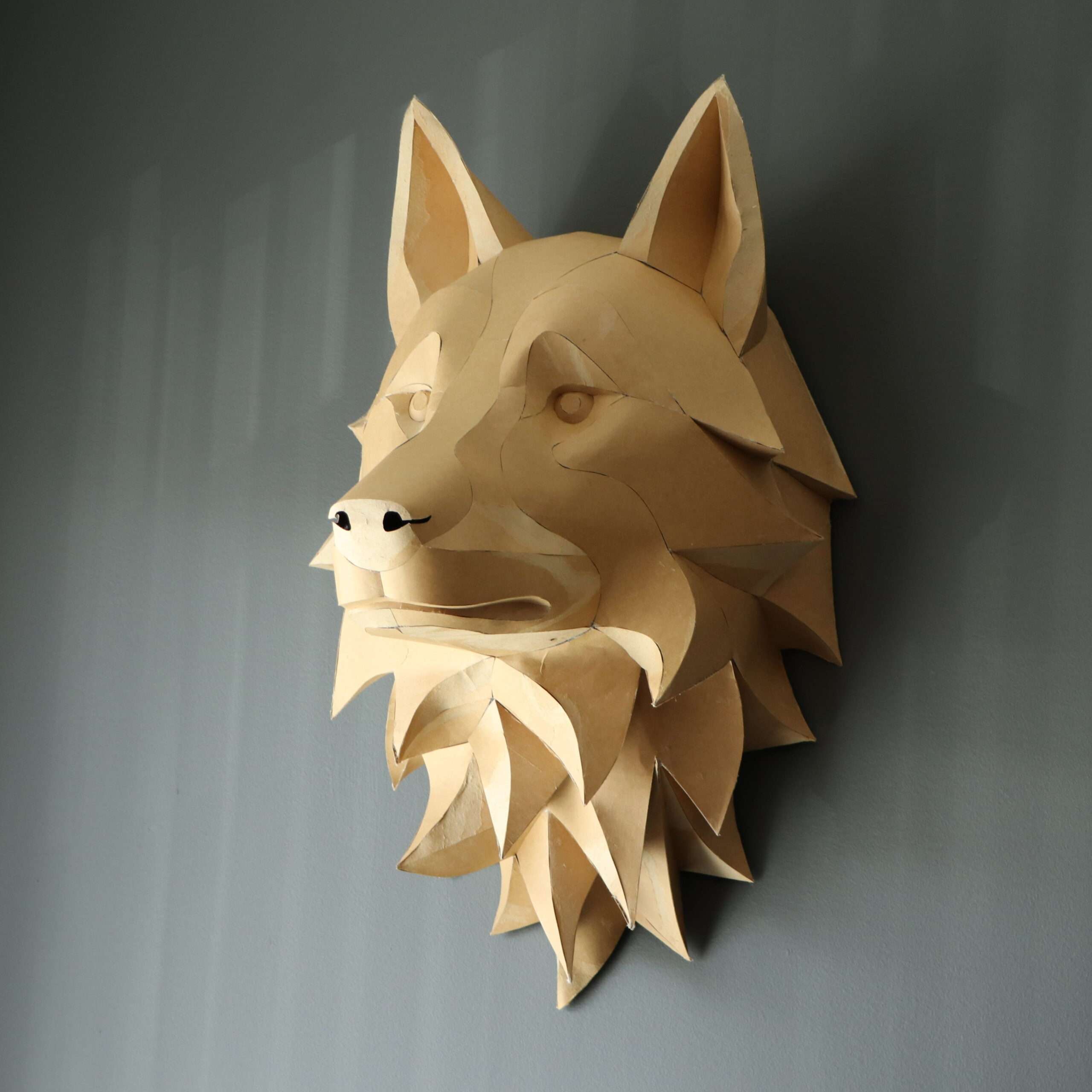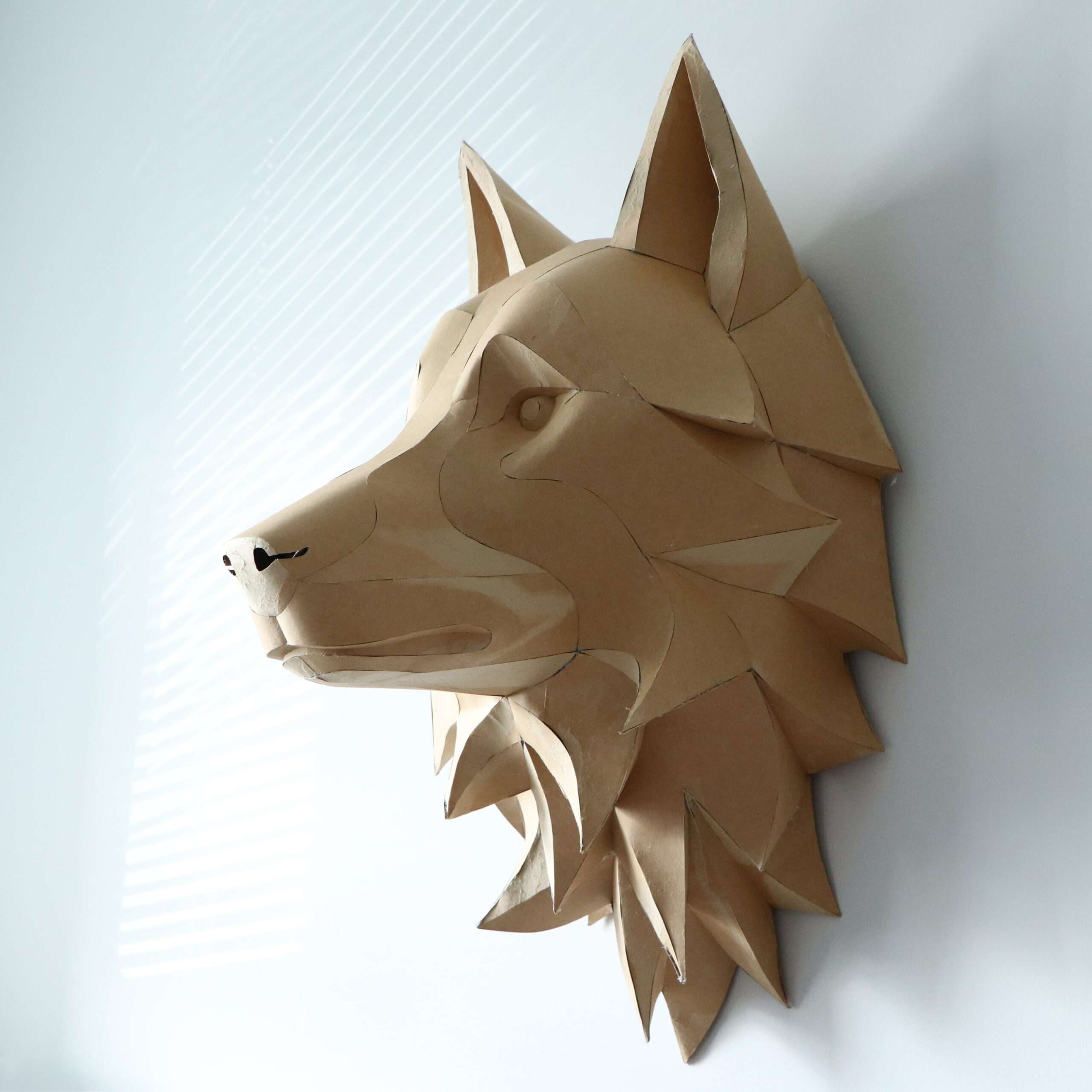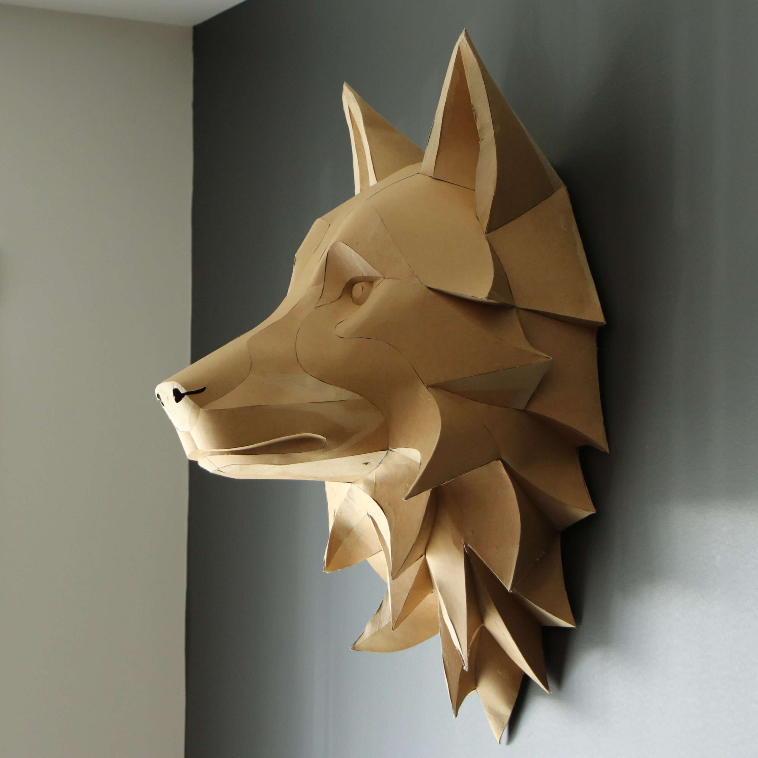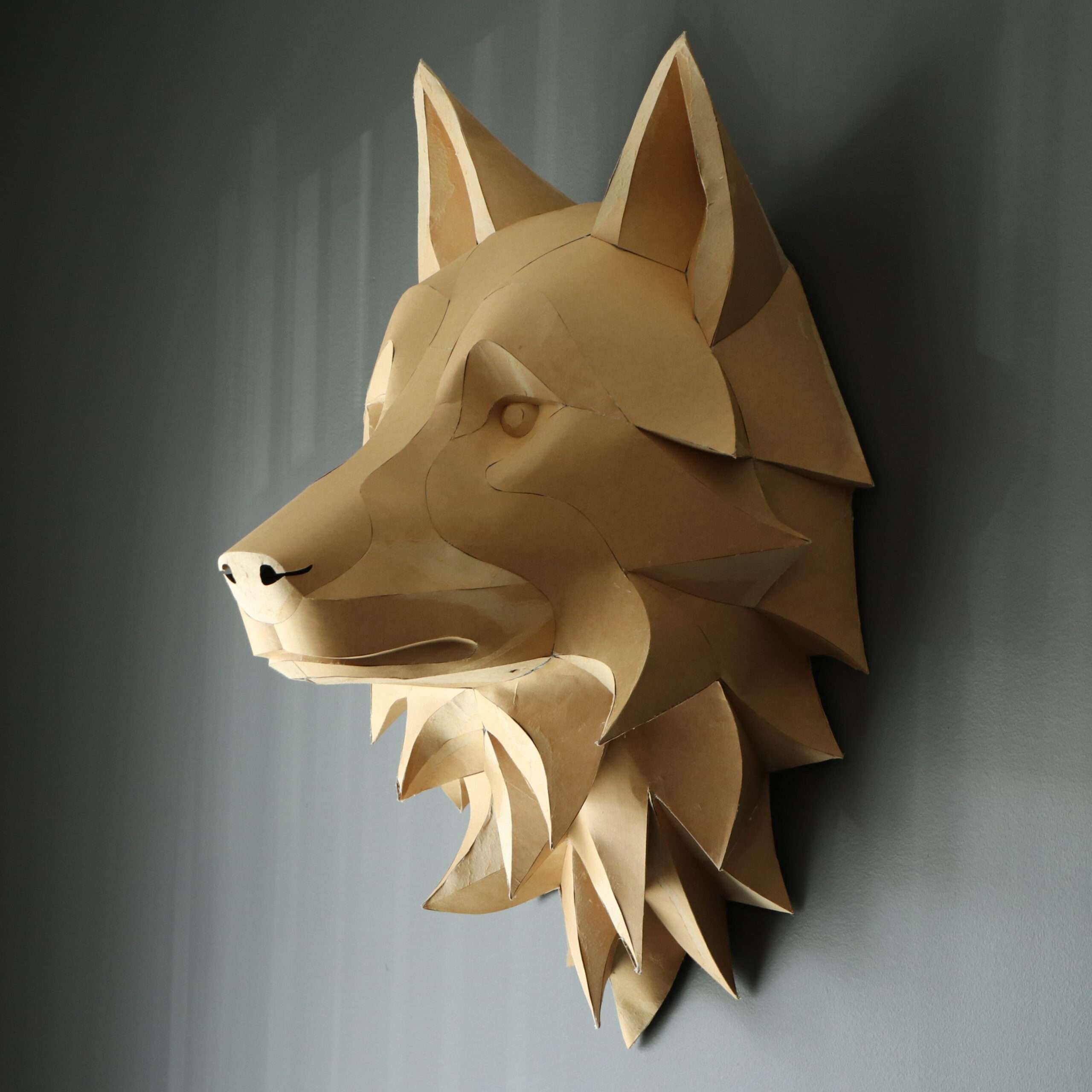 Wolf Head Wall Papercraft Template – DIY 3D Polygonal Sculpture, Low Poly Animal Head, Modern Wall Decor