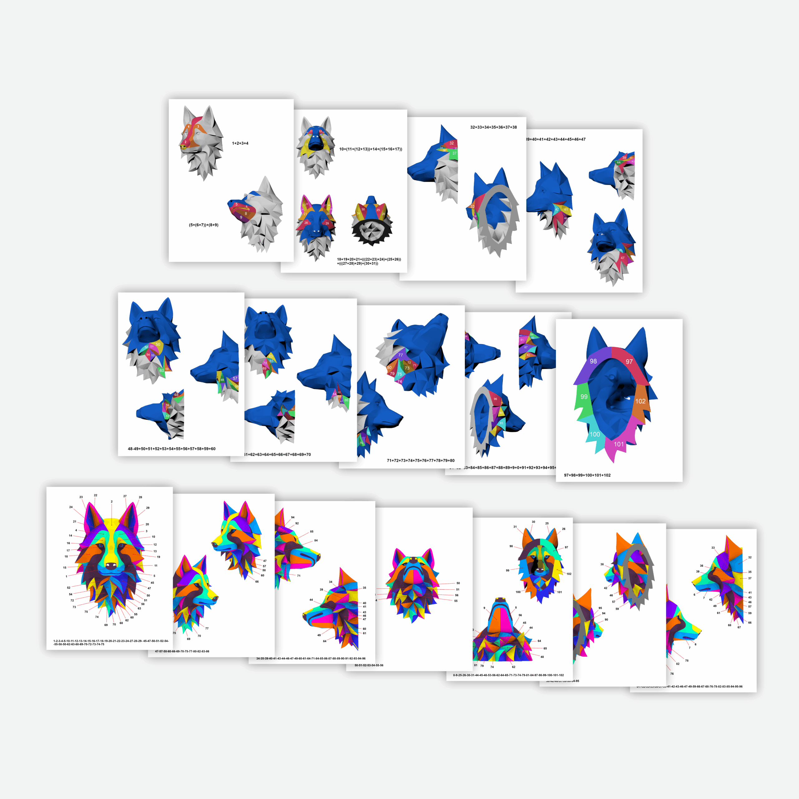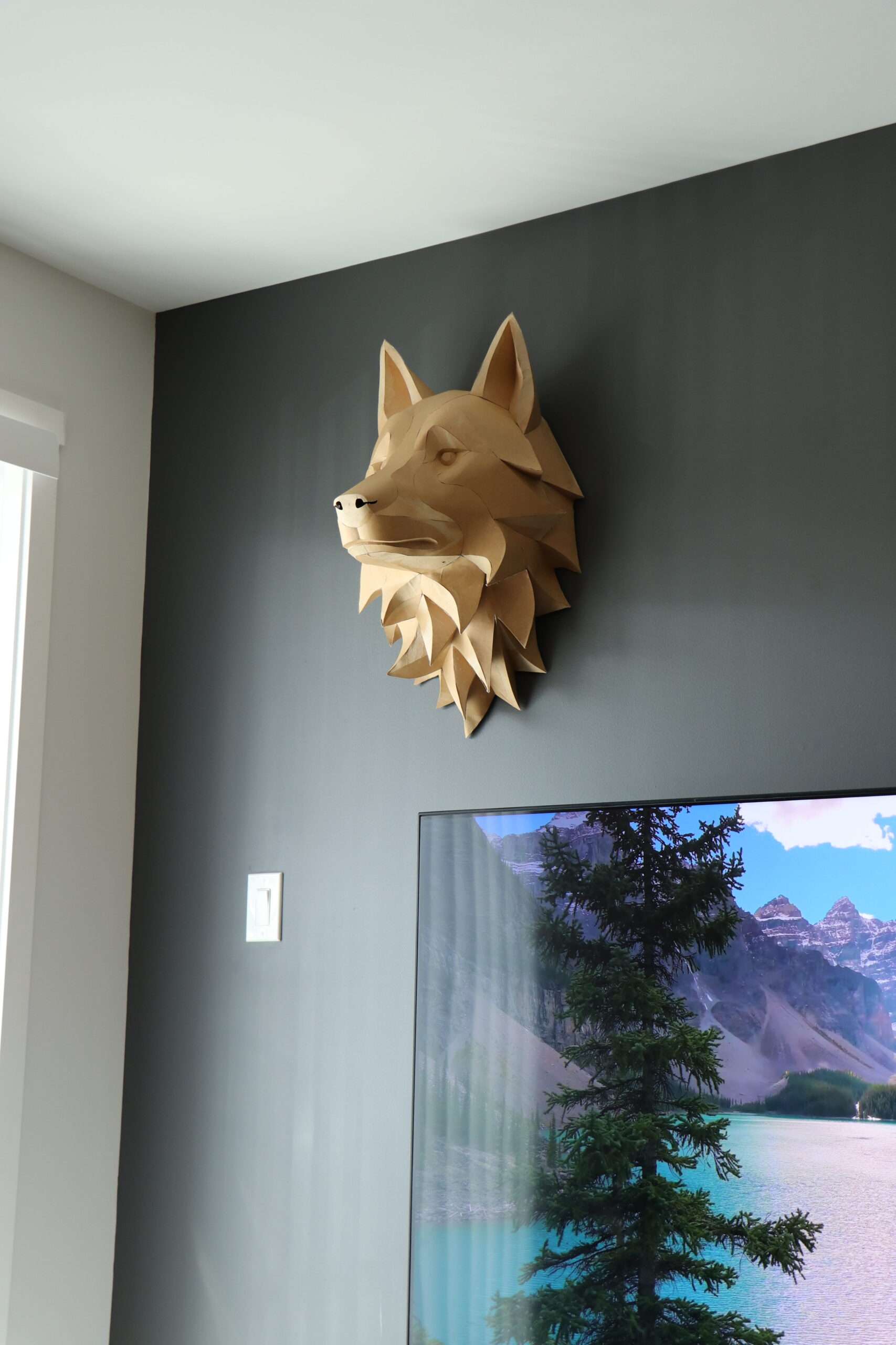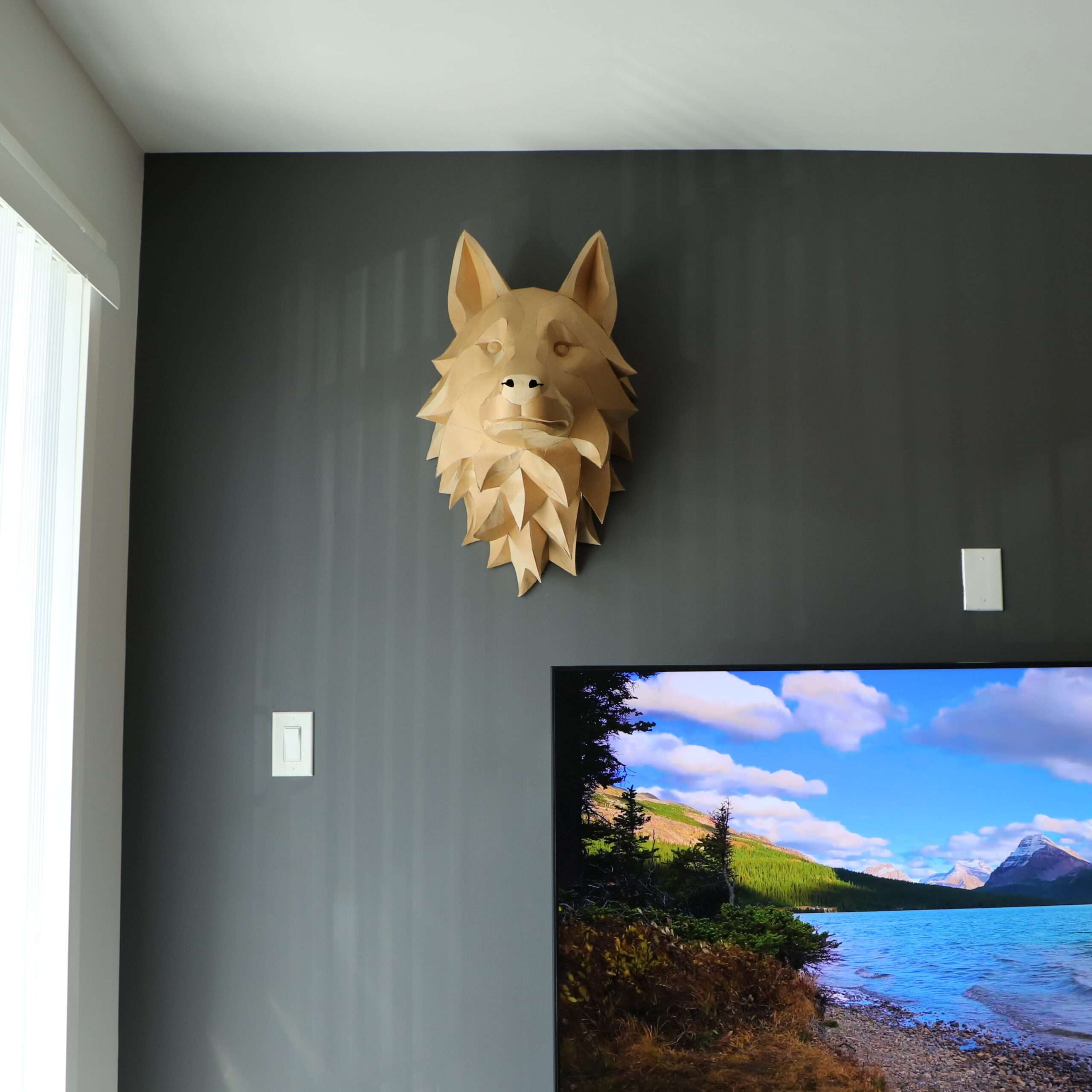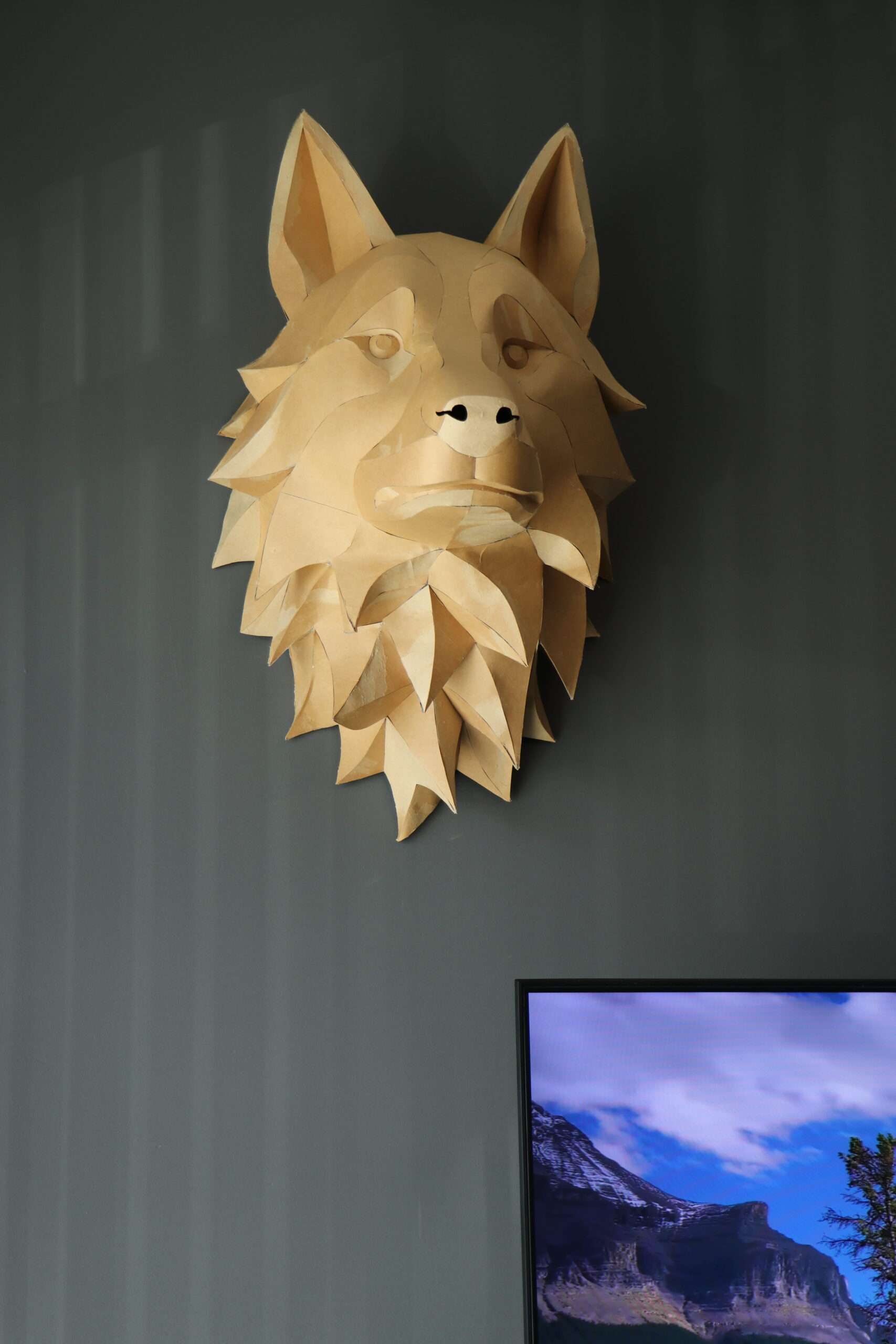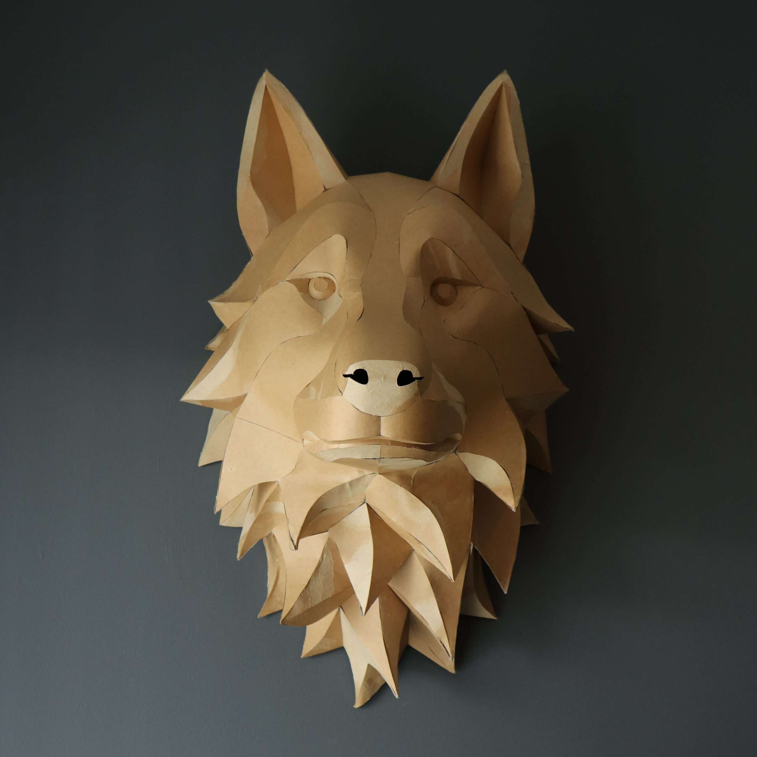 Wolf Head Wall Papercraft Template – DIY 3D Polygonal Sculpture, Low Poly Animal Head, Modern Wall Decor