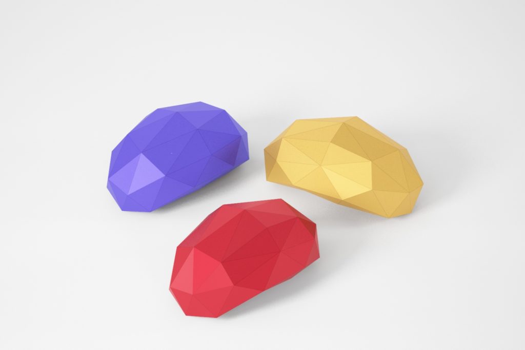 An abstract geometric form with bulges and depressions, designed as a stable object for testing different materials.