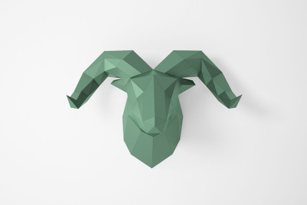 A simple ram head for wall mounting, built with minimal geometry and a compact shape.